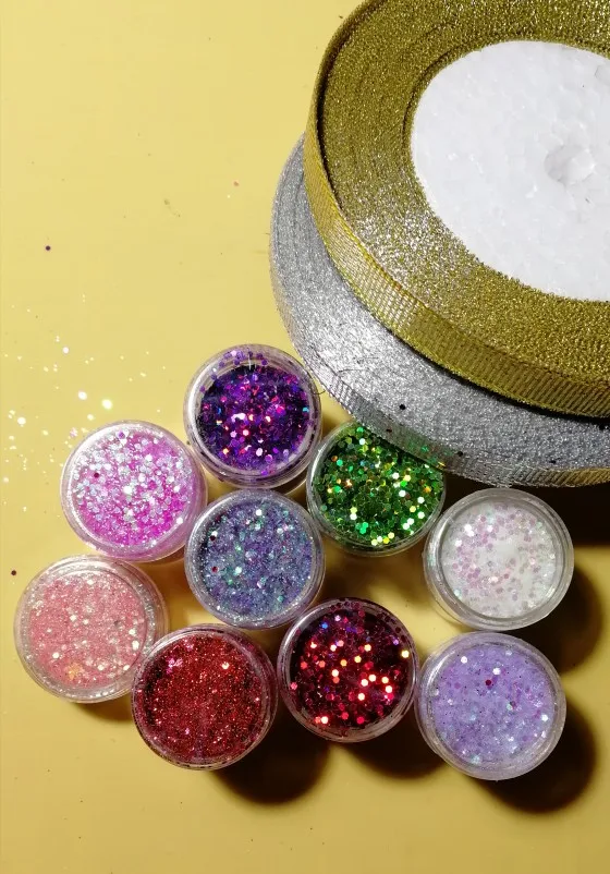 1 банка/коробка = 10 мл ≈ 5g блесток для ногтей