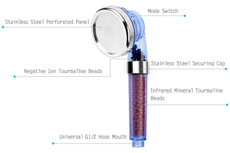 Размер этого продукта подходит для большинства основных душевые шлангиОсобенности:3 из АБС-пластика с узоромТри эффектных эффекта можно регулировать, чтобы вы могли насладиться расслабляющим ливнем.Керамические шарики с активированным отрицательным иономОтрицательные ионные шарики удаляют хлор, дальние инфракрасные минерализованные шарики и антибактериальные, удаляют 97% остаточного хлора и тяжелых металлов в воде, очищают воду, улучшают поглощение минеральных питательных веществ, уменьшают секрецию масла и повышают жизнестойкость клеток.Экономия воды и увеличение давления водыДушевая головка имеет лазерную перфорированную технологию, экономит больше воды и увеличивает давление водыПростая установкаНасадка для душа может просто завинчиваться на любой стандартный шланг для душа, очень удобноПрименениеОн также может быть широко использован в качестве садового спринклера, подходит для мужчин, женщин, детей и домашних животных.ПараметрыТип: душевая головкаМатериал: АБС-пластикЦвет: синий и прозрачныйКоличество: 1 шт.Панель диаметр: 8 см/3,1 дюймаВ общей сложности Длина: 22 см/8,7 дюймовDia.: 7,5 см/3"Вес нетто: 238 г/8,4 унцийПосылка:1 * душевая головка