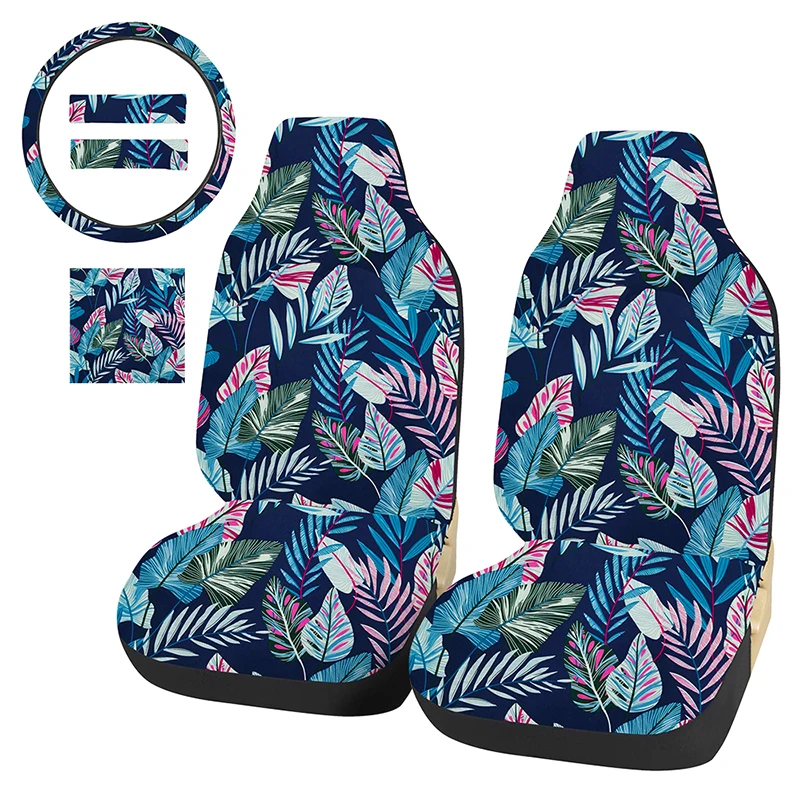 Автомобильные аксессуары с узором кокосового дерева, в комплект входят чехлы на передние сиденья автомобиля, чехол на руль, 2 чехла для ремня безопасности, универсальные, 5 шт.