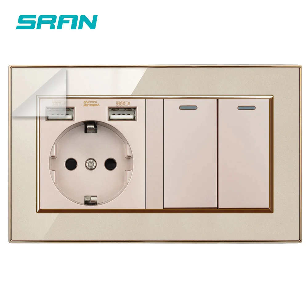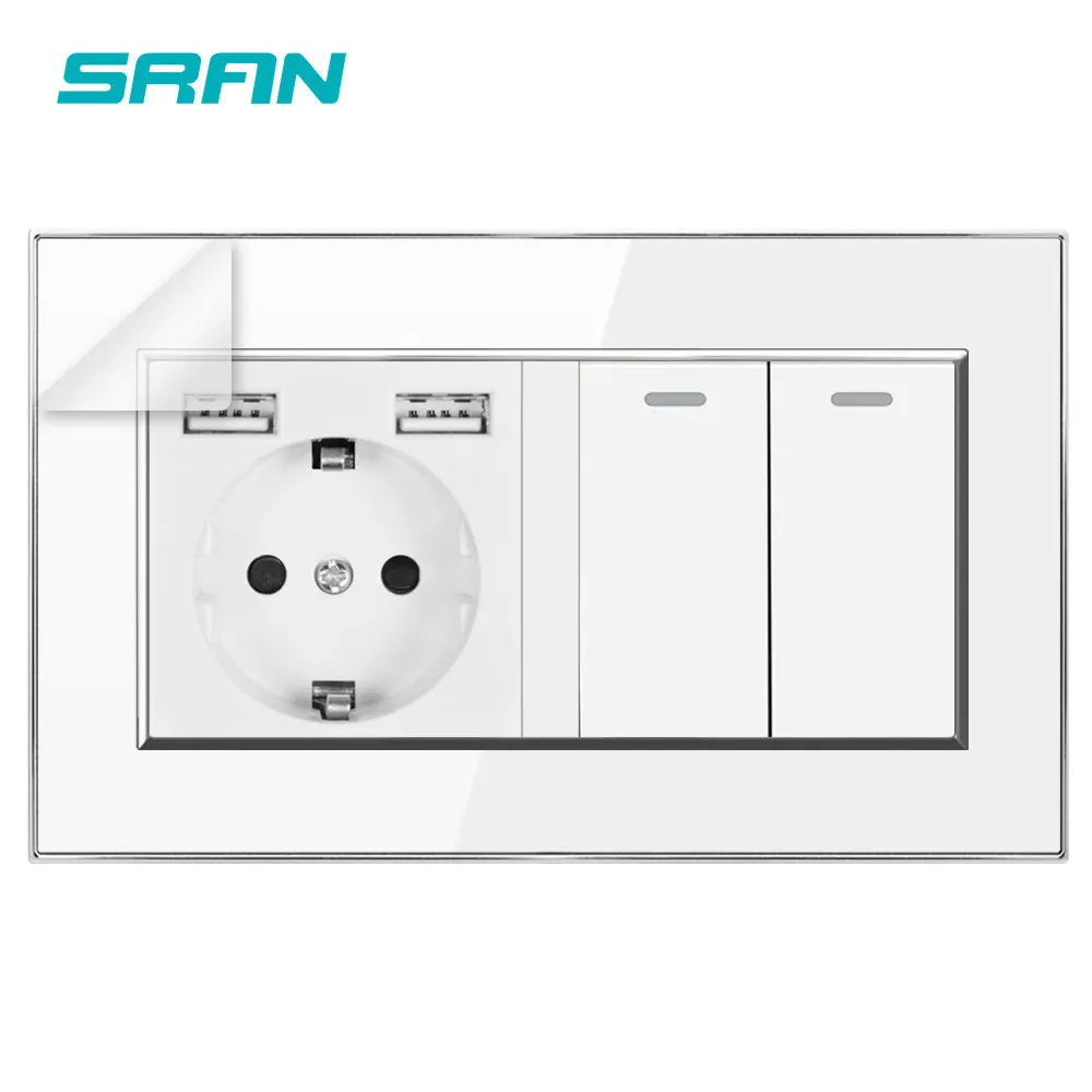 Настенный 16A несколько Европейский Розетка с usb док-станция для дома 5V 2A, розетка с Siwtch 2Gang 1Way акриловой панелью с защитная пленка