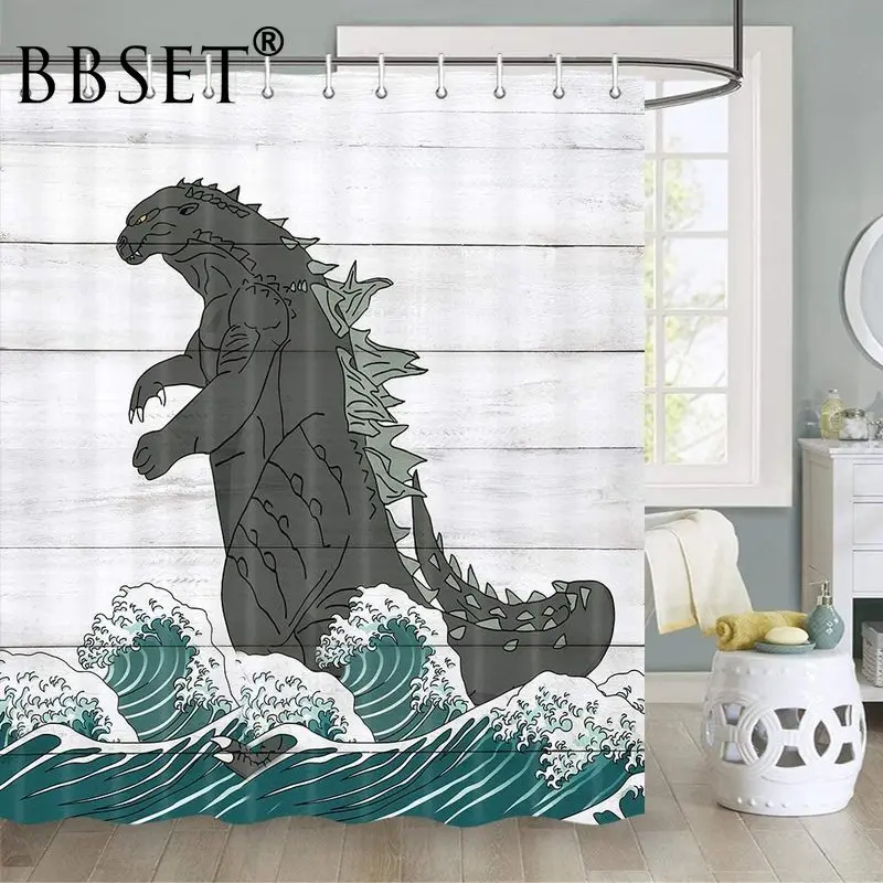 Забавные животные, занавеска для душа, динозавр и кот в канагаве, в...