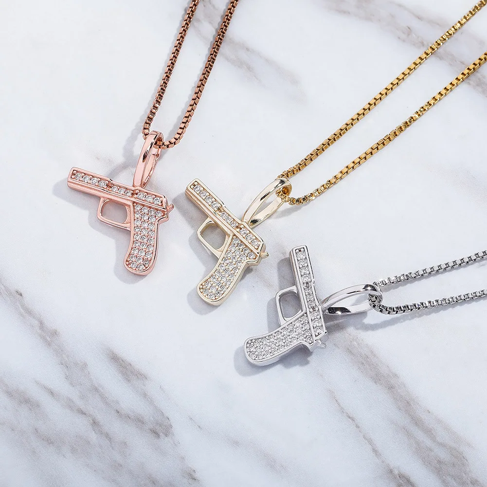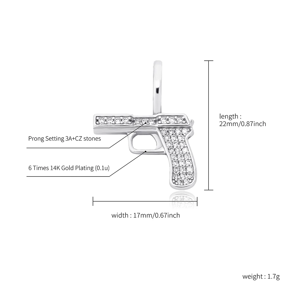 TOPGRILLZ, серебро 925 пробы, новинка, пистолет, кулон, высокое качество, ледяной Фианит, кулон в стиле хип-хоп, модное, нежное ювелирное изделие, подарок