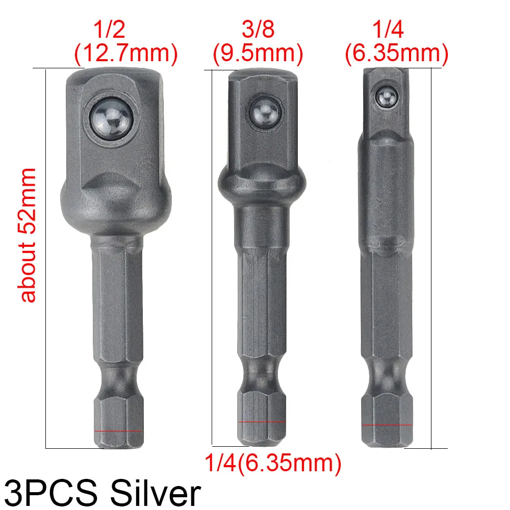 Переходник для ударного шуруповерта с шестигранным хвостовиком на квадратное гнездо, 3 шт., удлинитель 14 дюйма, 38 дюйма, 12 дюйма
