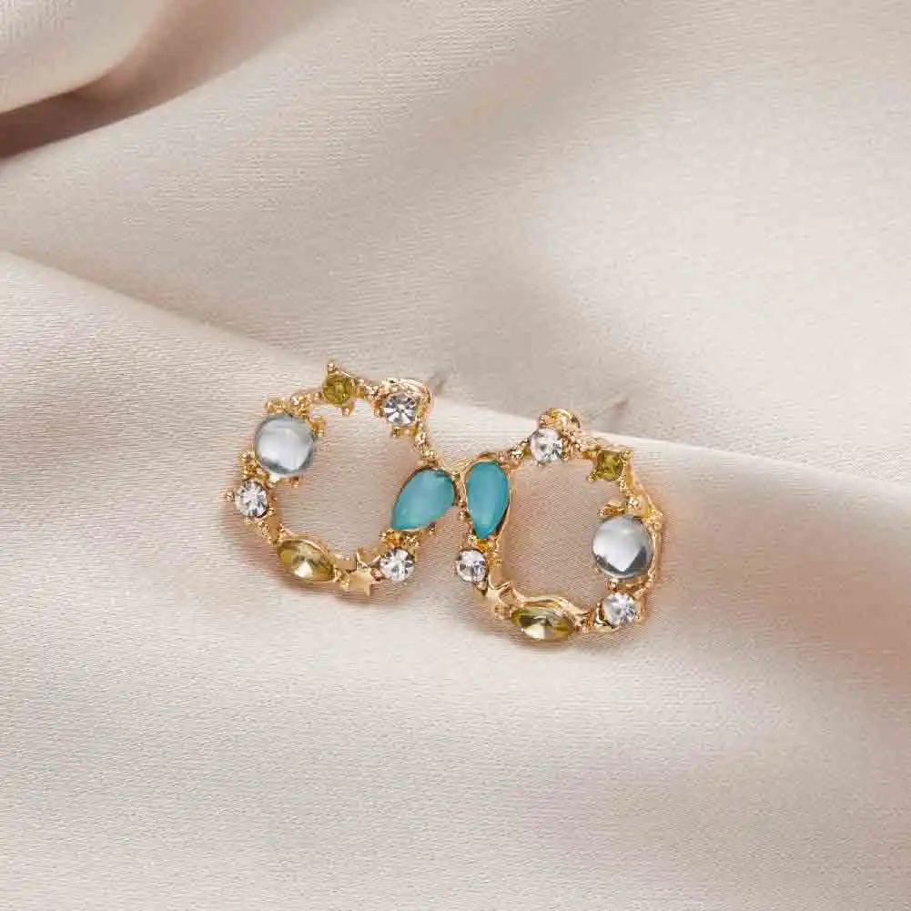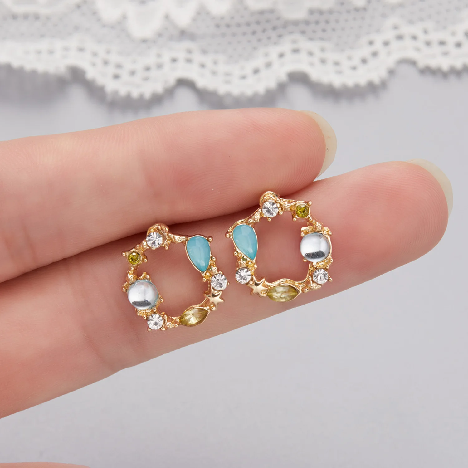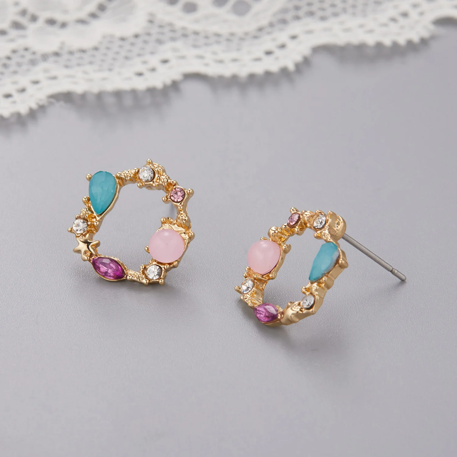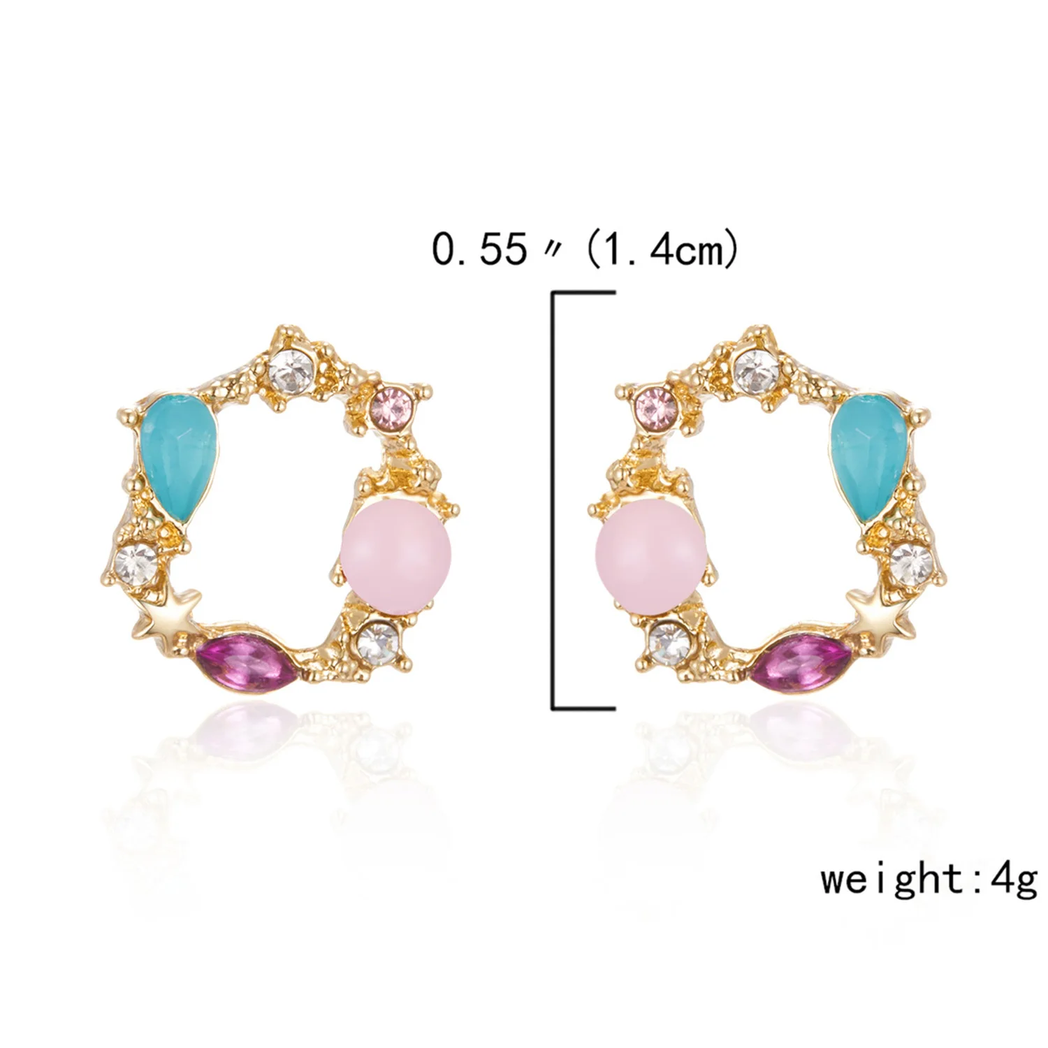 Классические круглые серьги-гвоздики с розовыми и зелеными кристаллами, Новое поступление 2022, милые круглые ювелирные изделия с цветами, модные подарочные серьги для женщин