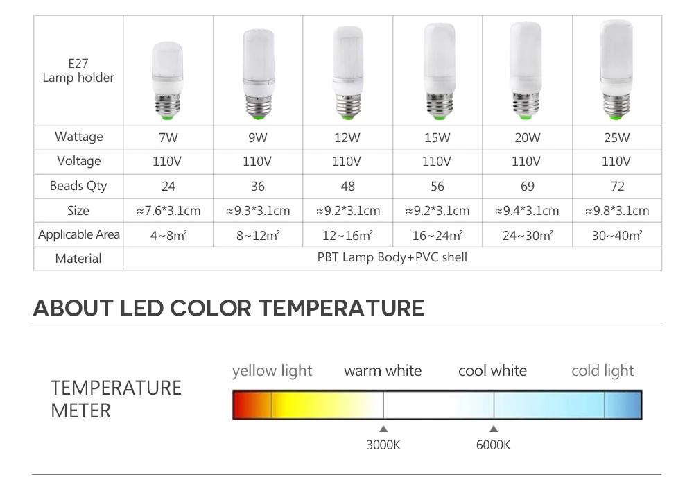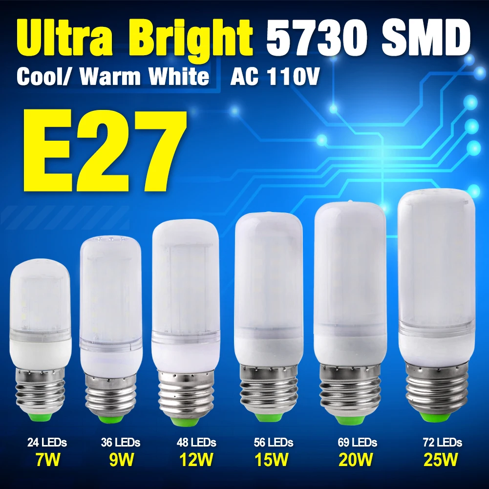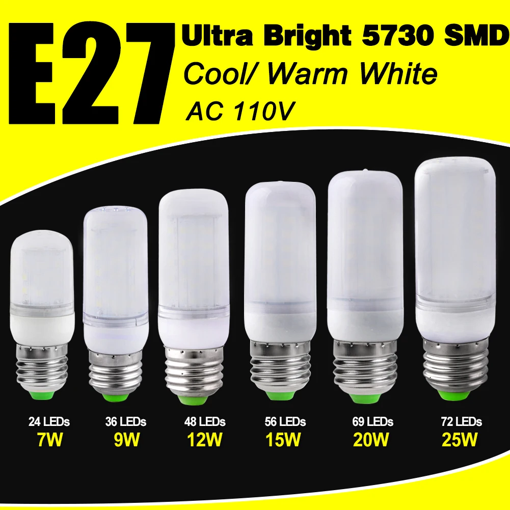 Светодиодная лампа E27, 10 шт.лот, 110 В, ампула, теплый белый, холодный белый, 24, 36, 48, 56, 69, 72 светодиода, лампа-кукуруза для домашнего освещения