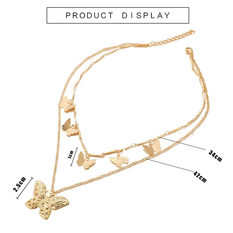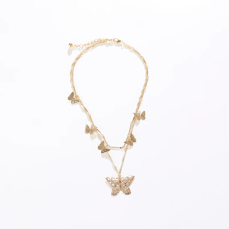 Новое Модное Новое милое короткое золотое Двухслойное ожерелье с подвеской-бабочкой ожерелье с татуировкой до ключиц ювелирные изделия подарок для женщин и девочек