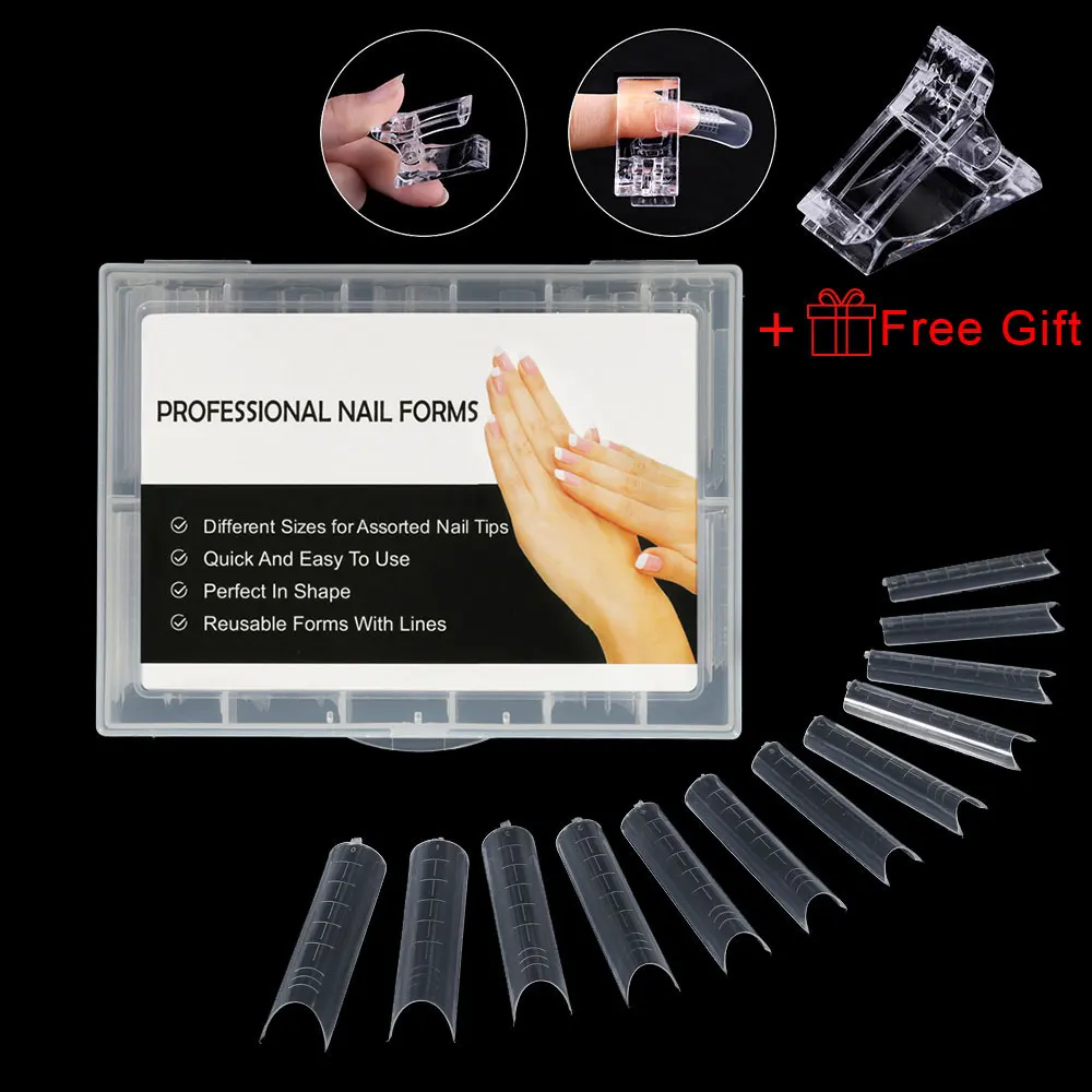 Прозрачная двойная форма для ногтевой системы, полное покрытие, для наращивания ногтей, аксессуары для ногтей, инструменты для маникюра, быстрое наращивание геля, 1 коробка
