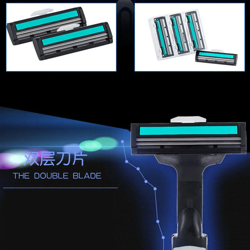 Бритвенное лезвие для мужчин 3 шт.коркоркор., двухслойный кассета для ухода за лицом для бритвы из нержавеющей стали, бритвенное лезвие для ручной бритвы