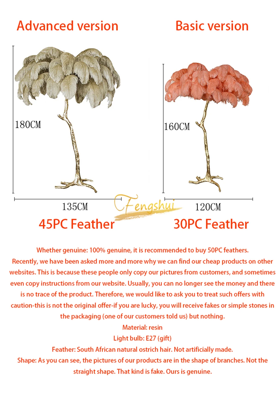 Перья-это настоящие страусиные перья, особенно красивые белые, а корпус лампы также очень тяжелый и текстурированный