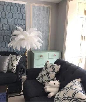 Эта перьевая напольная лампа находится в гостиной, и в гостиной все сразу ощущается роскошно