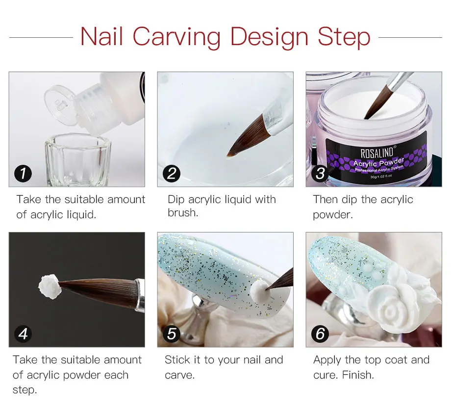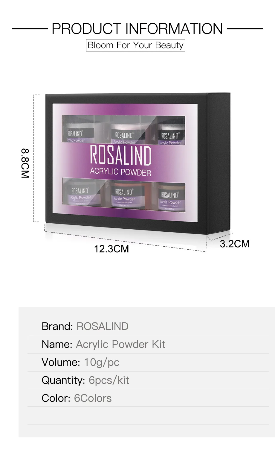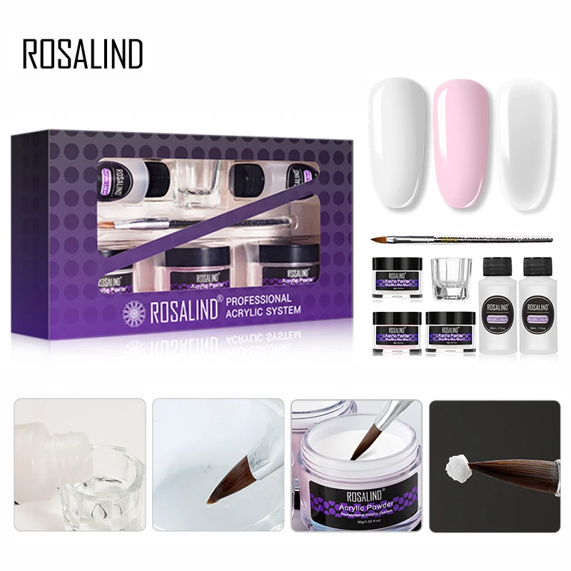 Набор акриловых порошков ROSALIND для наращивания ногтей, набор для маникюра, Нейл-арт, кисточки для нейл-арта