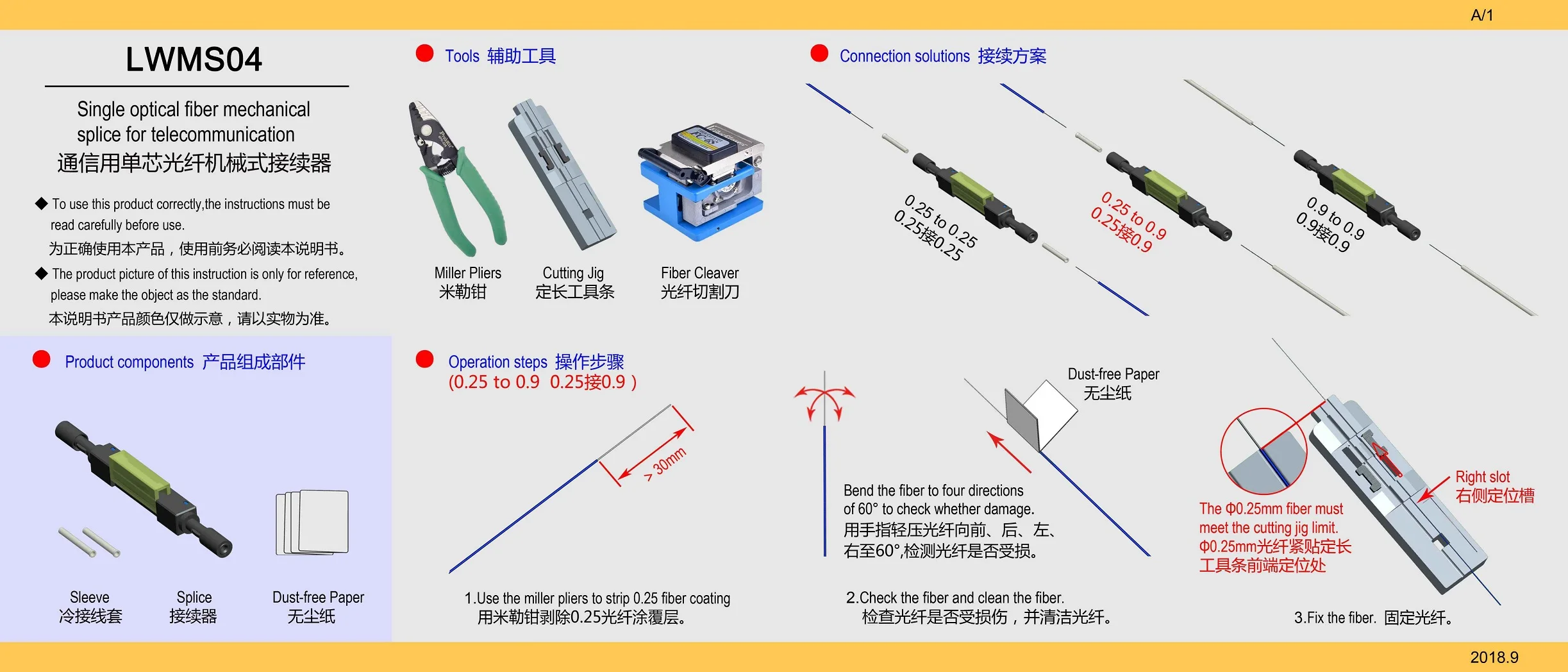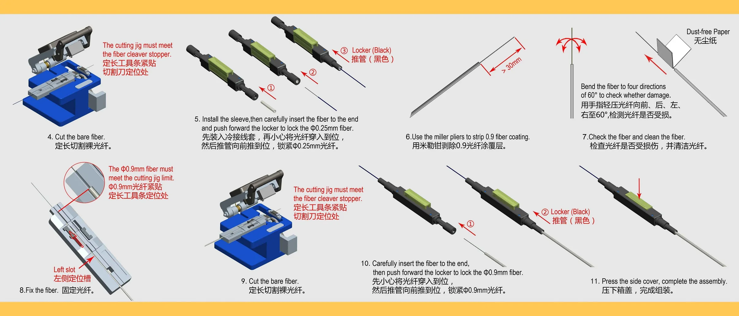 Быстроразъемный волоконно-оптический соединитель 0,9x0,9 мм, быстрый соединитель, устройство для холодного соединения с корпусом, механическое соединение для кабельного кабеля