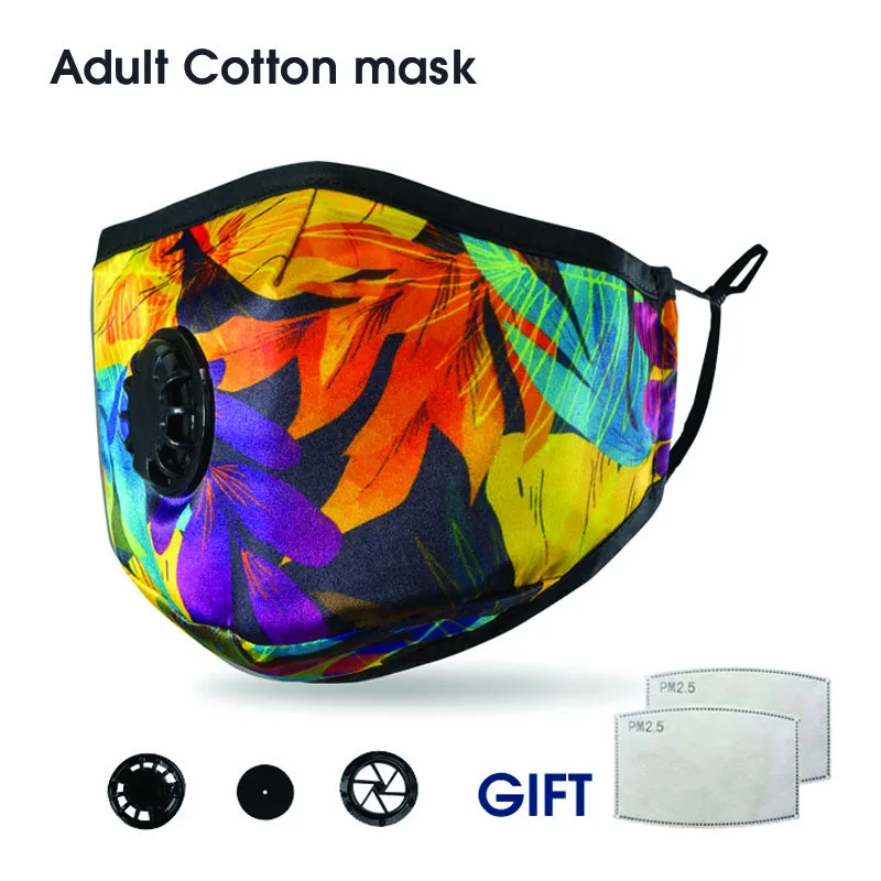 Хлопковая Крышка для лица с 2 карбоновыми воздушными фильтрами, моющаяся, многоцветная, с регулируемыми ремешками