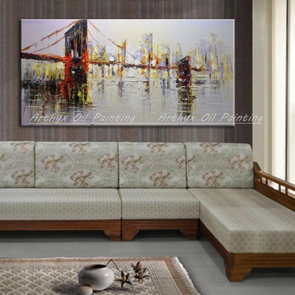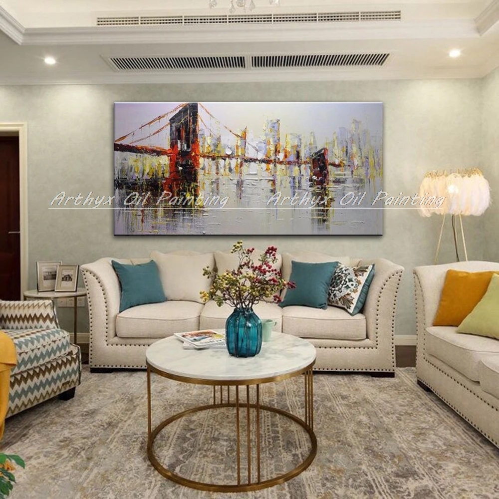 Arthyx ручная роспись абстрактный нож мост пейзаж картины маслом на холсте художественные плакаты настенные картины для гостиной домашний декор