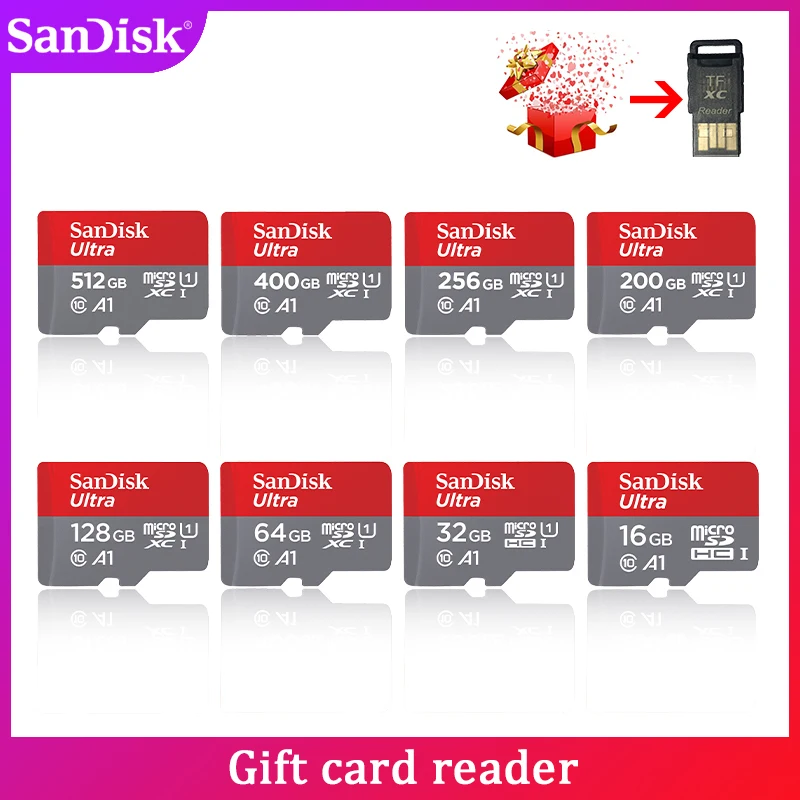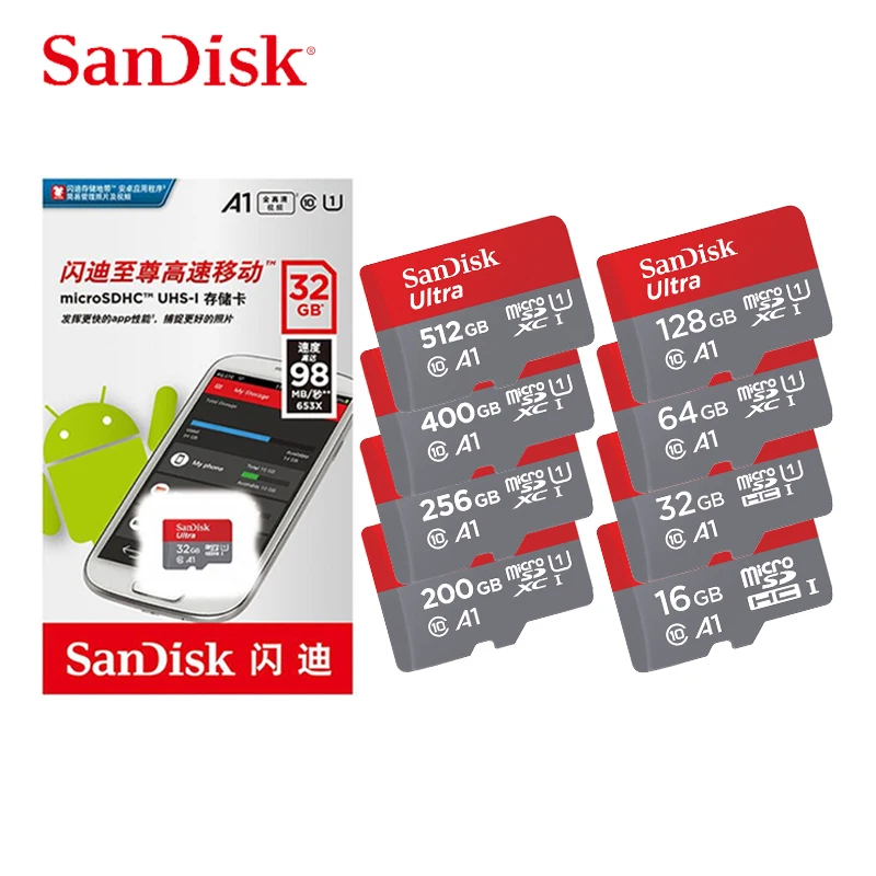 SanDisk A1 карта памяти, класс 10, 512 ГБ, 400 гб, 128 ГБ, 64 ГБ