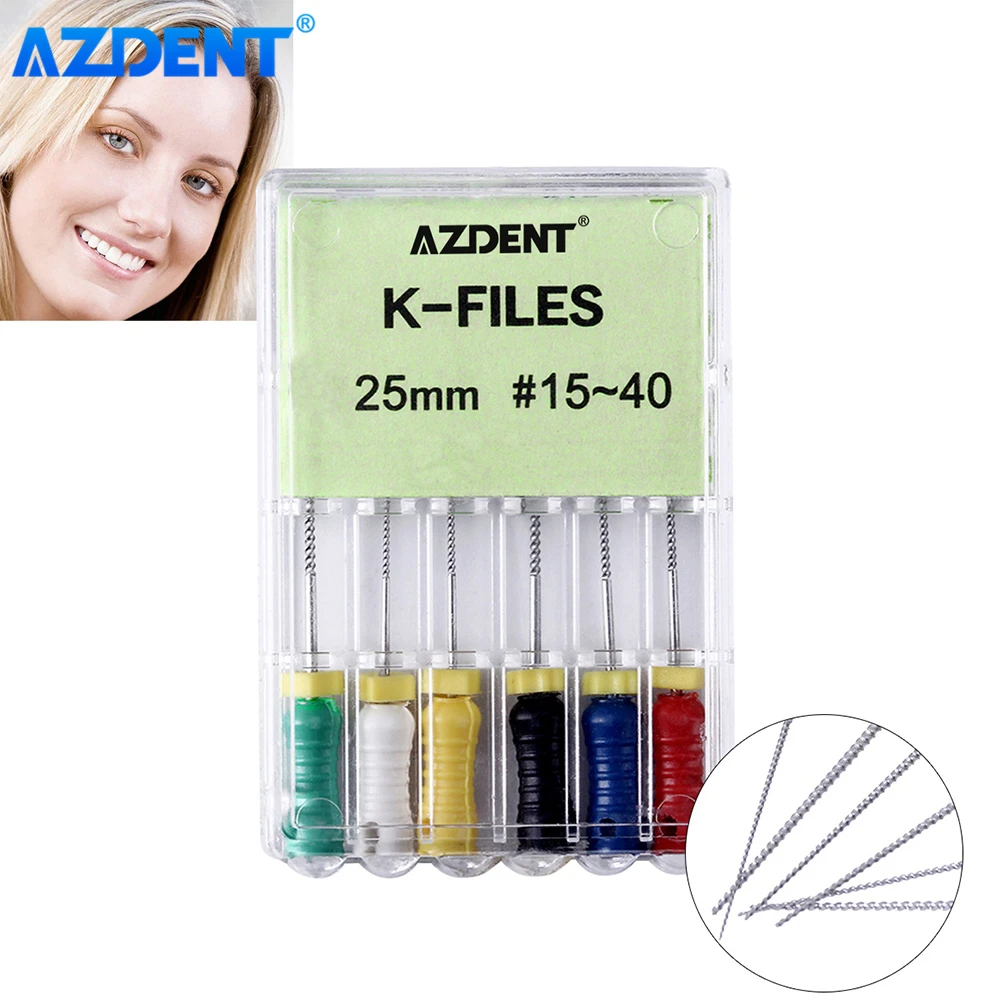 AZDENT стоматологические файлы для ручного использования, эндододонтический нити-расширитель корневого каналаK-файлH-файл #15-40, стоматологические лабораторные инструменты