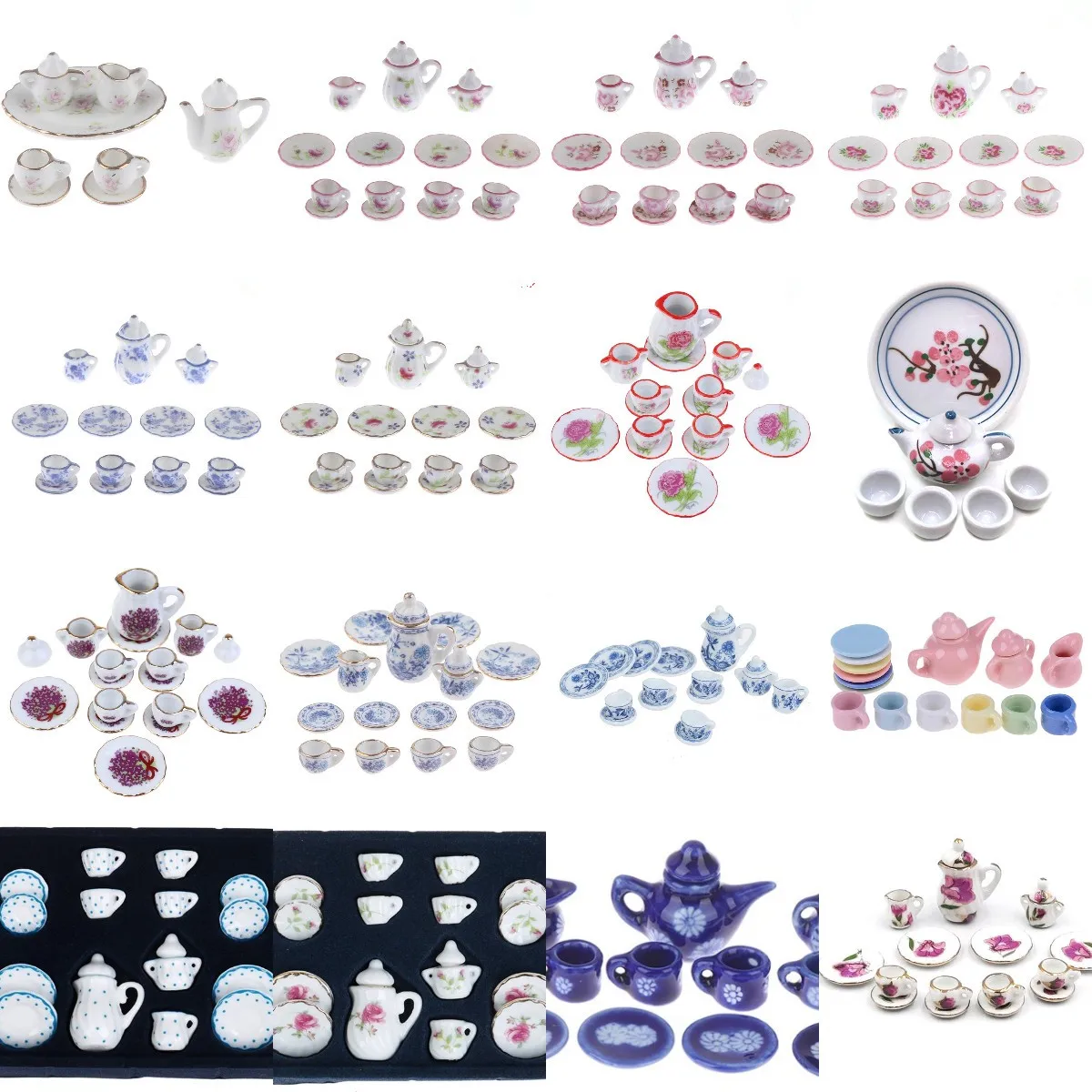 Набор керамических чашек в масштабе 1:12 для кукольного домика, Миниатюрный фарфоровый набор чайных чашек, посуда для кукольного домика, игрушки для самостоятельной сборки