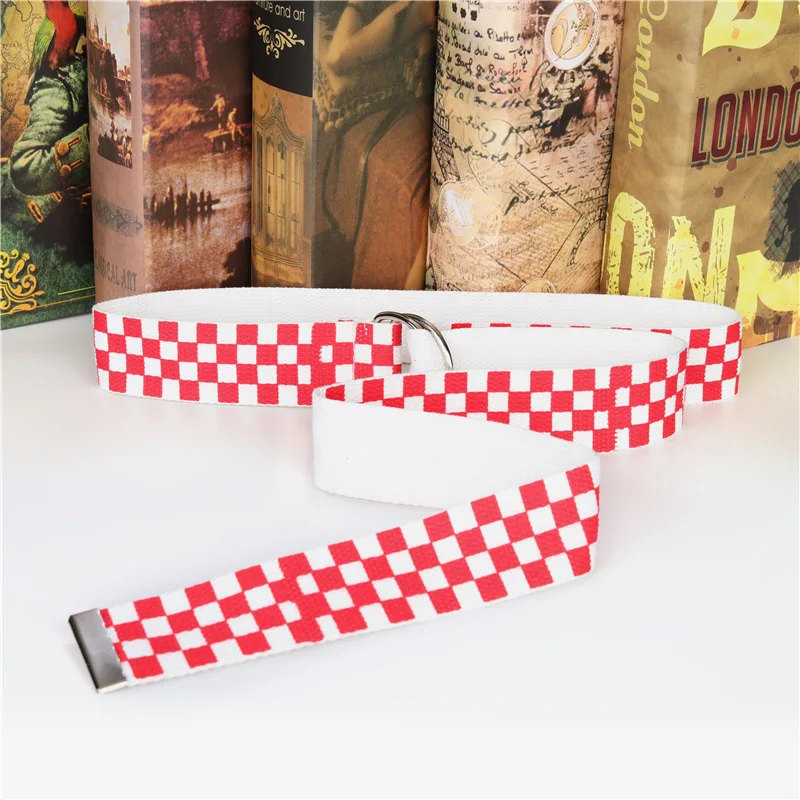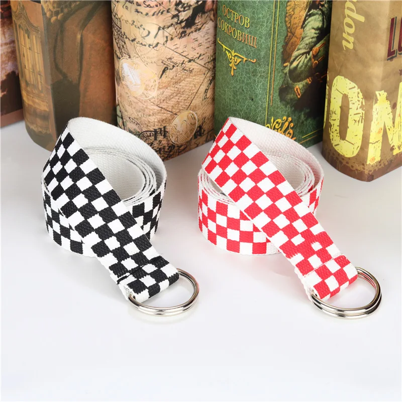 Ремень в клетку для мужчин и женщин, брезентовый пояс в шахматную клетку, 3,8 см, с D-образной пряжкой, в стиле кэжуал