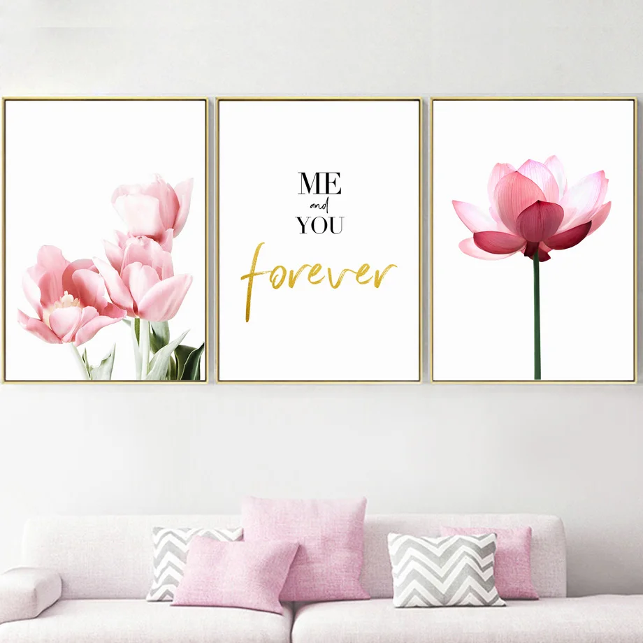 Розовый Лотос тюльпан Хризантема небо морская стена искусство холст картина скандинавский плакат и печать, Картина Настенная для гостиной домашний декор
