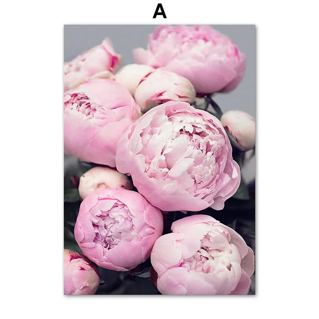 Постер в скандинавском стиле с розовыми цветами, пионами, перьями, ...