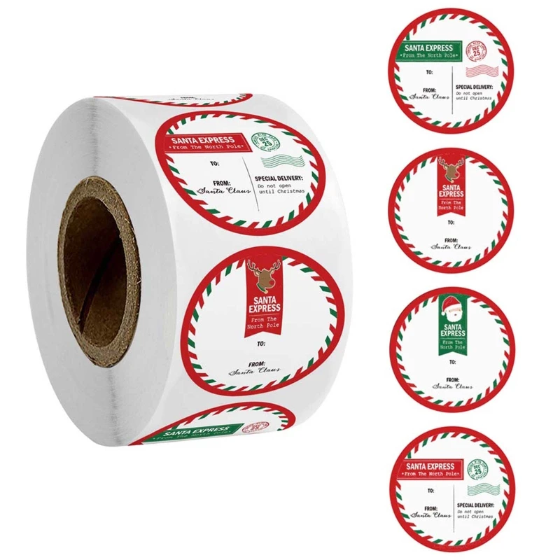 8 рисунков, 500 шт.рулон, Рождественская наклейка, спасибо, стикер s этикетки для печати для детской подаропосылка упаковки, украшение для скрапбукинга