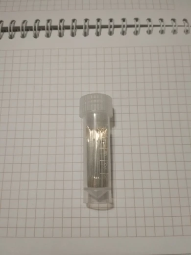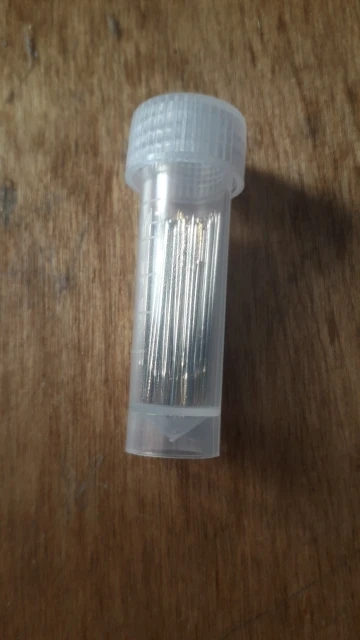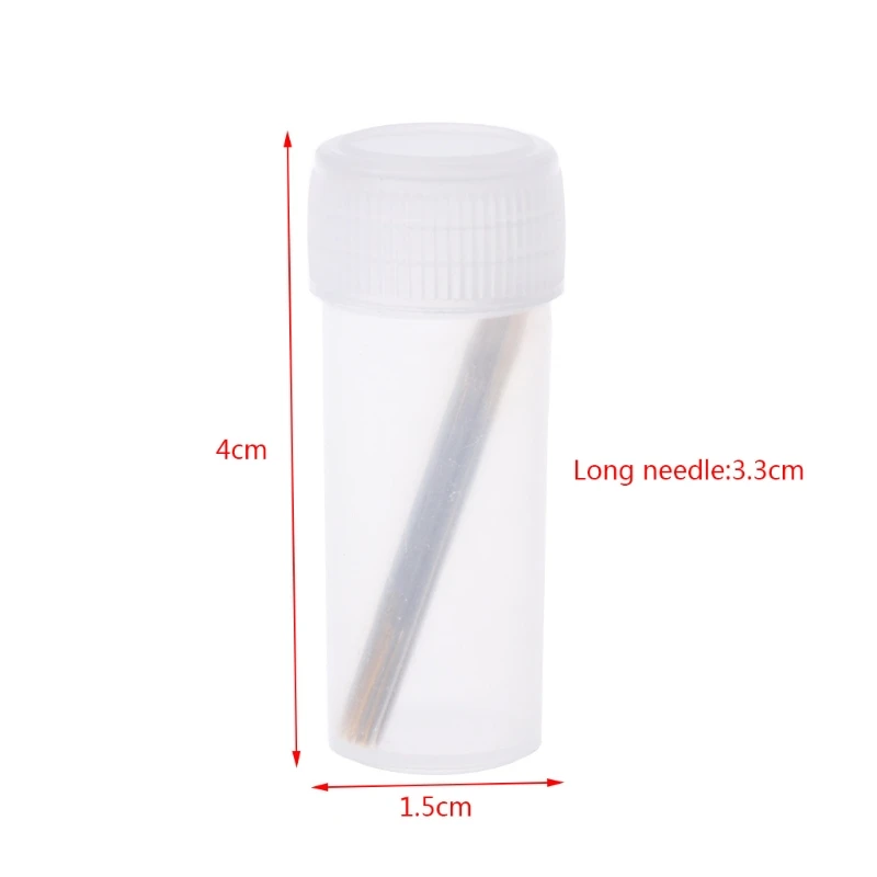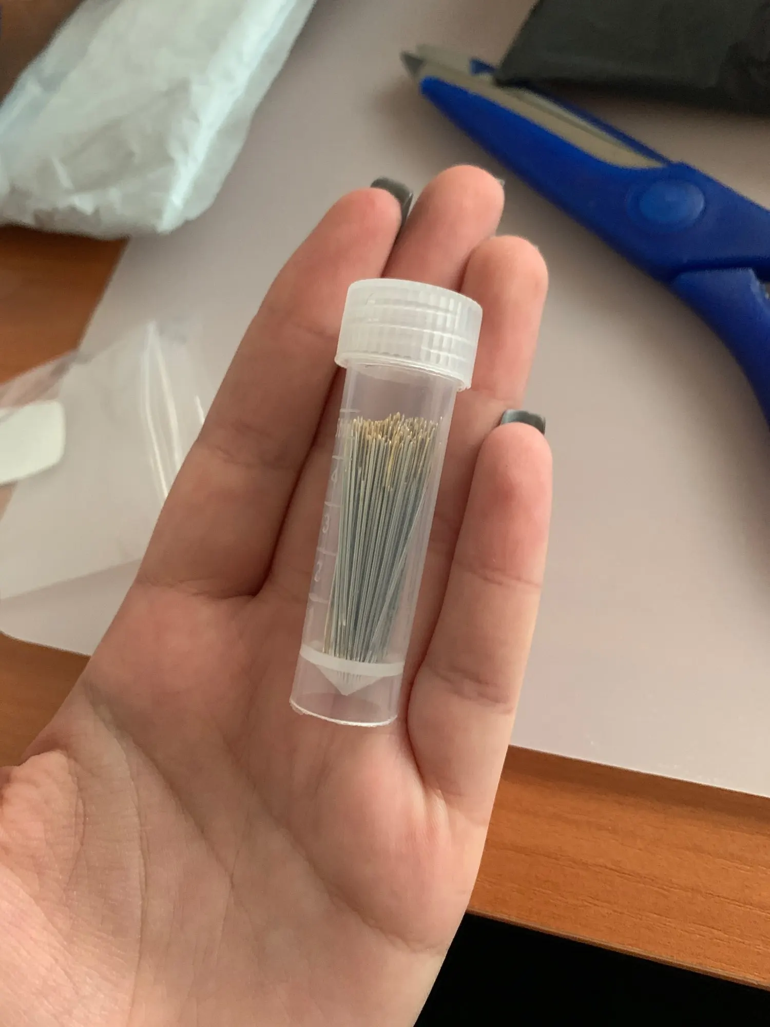 очень долгая доставка. трек не отслеживался. в небольшом пластиковом контейнере с удобной закручивающейся крышкой ровные иглы достаточной длины.