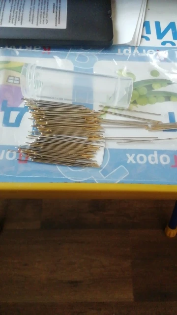 замечательный товар, иголочки идеальны для вышивки крестом, удобный пластиковый контейнер с закручивающейся крышкой, что удобно для хранения. одна иголка попалась со сломаным ушком, но это не проблема, продавец положил 5 иголок в подарок. рекомендую продавца и магазин, буду ещё у них заказывать