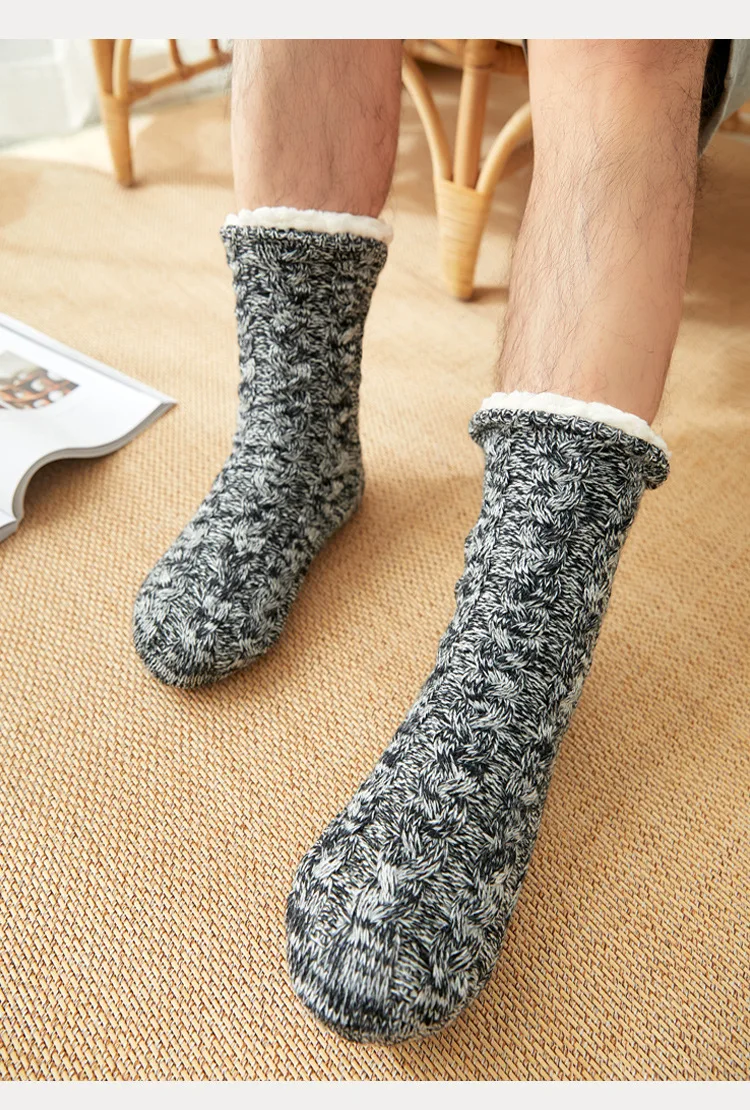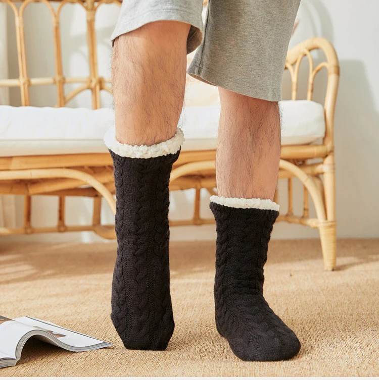 Домашние мужские тапочки, теплые Нескользящие тапочки с мехом, мягкие, большого размера