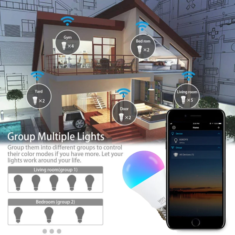 Даже если вы находитесь вдали от дома, вы можете контролировать состояние ламп, и вы можете управлять несколькими устройствами в группы.