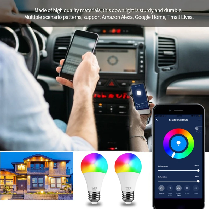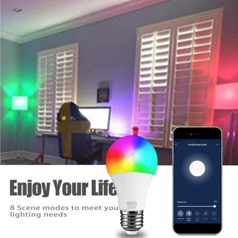 Лампочка с регулируемой яркостью 110 В, 15 Вт, RGB + CCT, умная лампочка с голосовым управлением, работает с Alexa Google Home B22E27