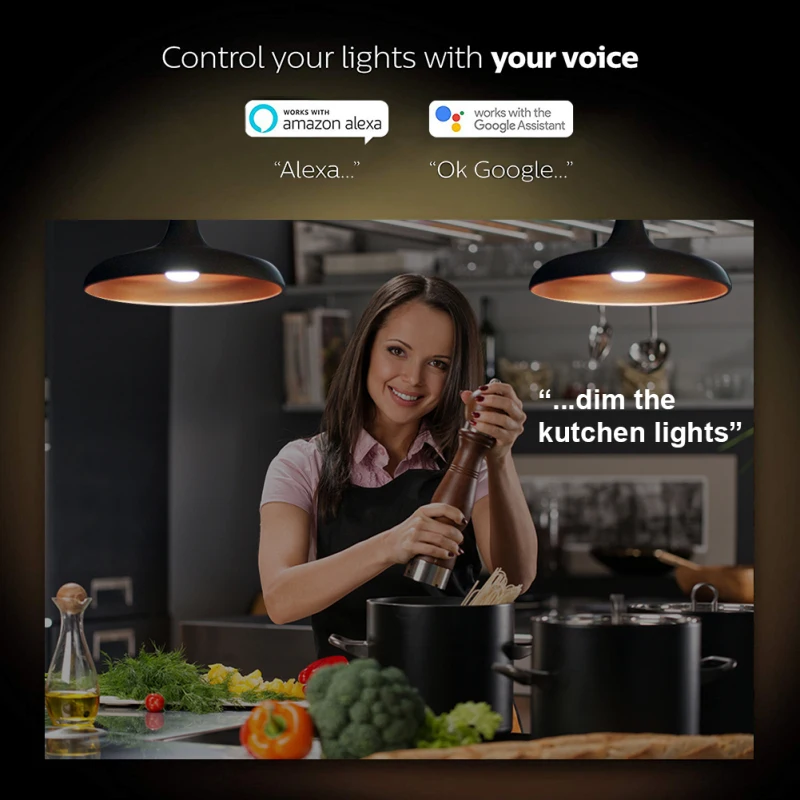 И управляйте этими умными лампами через свой голос с Amazon Alexa, Google Assistant, Siri и IFTTT. Просто дайте команду включить/выключить или затемнить/осветить цвет лампы. Функция голосового управления.