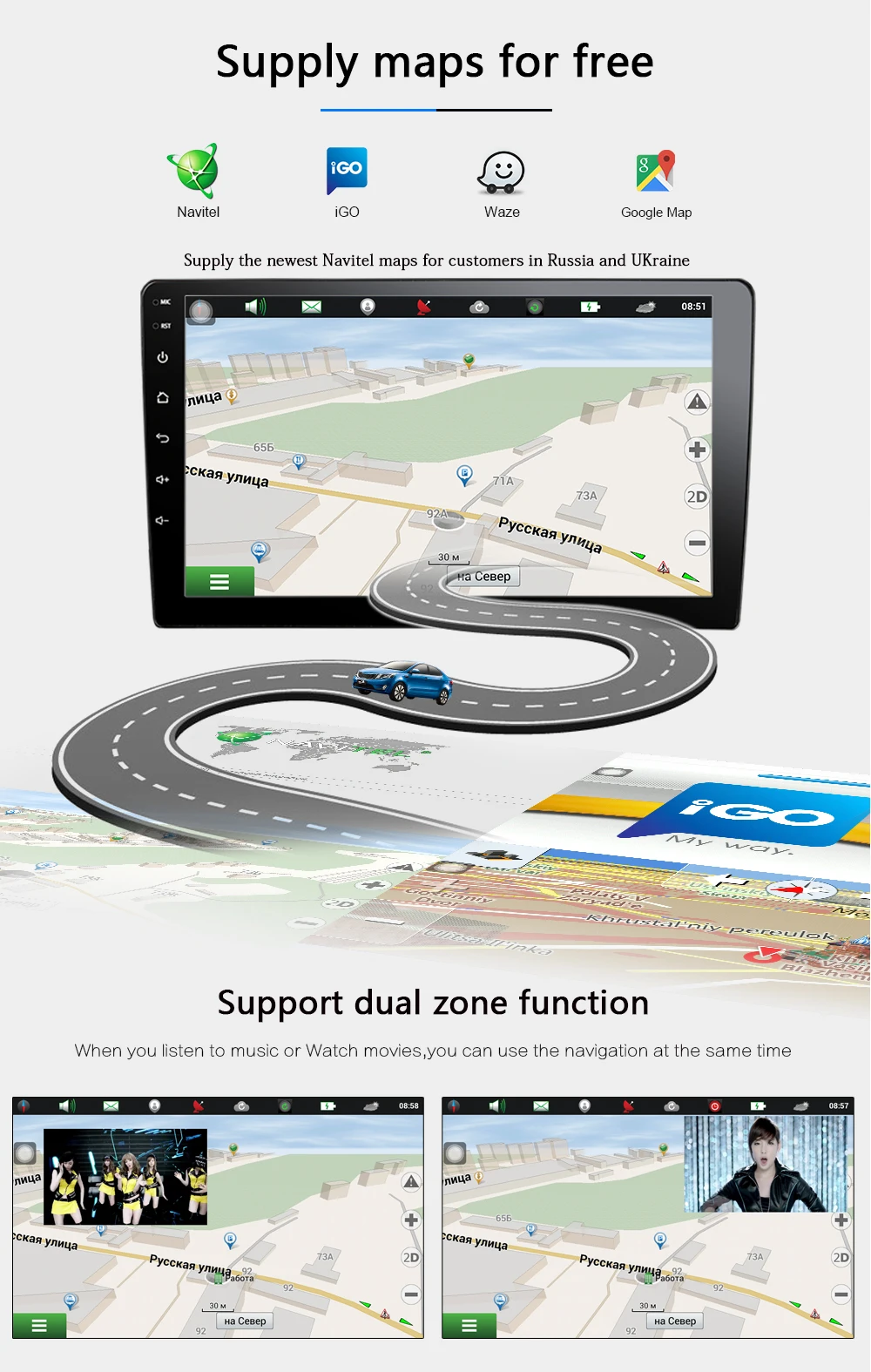 Особенности1. Обновленная двойная система зеркальной связи: IOS/Android зеркальной связиIOS one-way :IOS поддерживает мобильный телефон с односторонней проекцией на машинуAndroid двусторонний: Android поддерживает мобильный телефон двустороннее соединение2. Встроенный GPS Прием: пользователи могут приобрести напрямую из play store для автономной навигации. С Wi-Fi подключен, Google Maps может использоваться идеально, вы можете пойти куда угодно и никогда не потеряться снова!3. Встроенный WIFI: подключение к WIFI, и вы найдете новый мир, самый удобный-это онлайн-карта.4. Камера заднего вида: необходимо выбрать камеру, автомобиль подключен к обратной передаче для автоматического переключения (требуется дополнительно)5. Управление рулевым колесом: через него вы можете управлять функциями, которые вам нужны, с помощью рулевого колеса, более удобно6. Встроенный Bluetooth 4,0 с A2DP/Hands Free/Телефонная книгаПоддержка Bluetooth громкой связиМузыкальный плеер BluetoothАвтозагрузка телефонных книг7.10.1 ''1024*600 супер высокой четкости цифровой экран8. Запись вождения: вы можете выбрать регистратор, и автомобиль имеет воспроизведение, доказательства могут быть сохранены9. Двойной вход USB адаптера10. Встроенный FM с 30 предустановленными станциями11. Поддержка файлового менеджера: поддержка загрузки, установки и удаления более тысячи приложений android12. Поддержка нескольких языков: поддержка языков, до 70 национальных языков13. Вы можете наслаждаться музыкой с вашего мобильного телефона без каких-либо кабелей, а также поддержка USB connetion.14. Fm-радио: онлайн-музыка, вы можете передавать музыку на автомобильный стерео FM, чтобы наслаждаться оригинальным стереозвуком автомобиляПосылка включает в себя:1 х Автомобильный MP5 плеер1 х Кабель питания1 x Антенна GPS1 x вход камеры1 х RCA вход и выход2 x USB кабельРуководство по эксплуатации-1 шт.