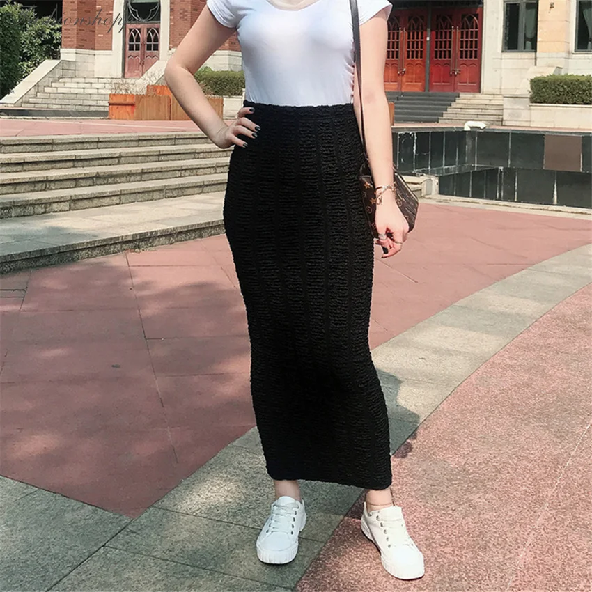 Женская модная мусульманская трикотажная Макси-юбка-карандаш с высо...