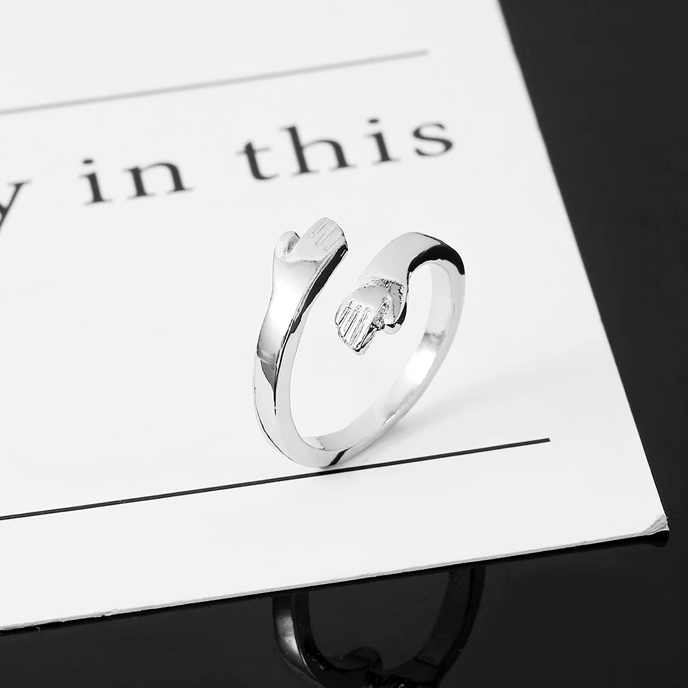 Романтические кольца объятия серебряного цвета, креативное регулируемое кольцо с открытым пальцем Love Forever, ювелирные изделия для влюбленных, подарок для женщин