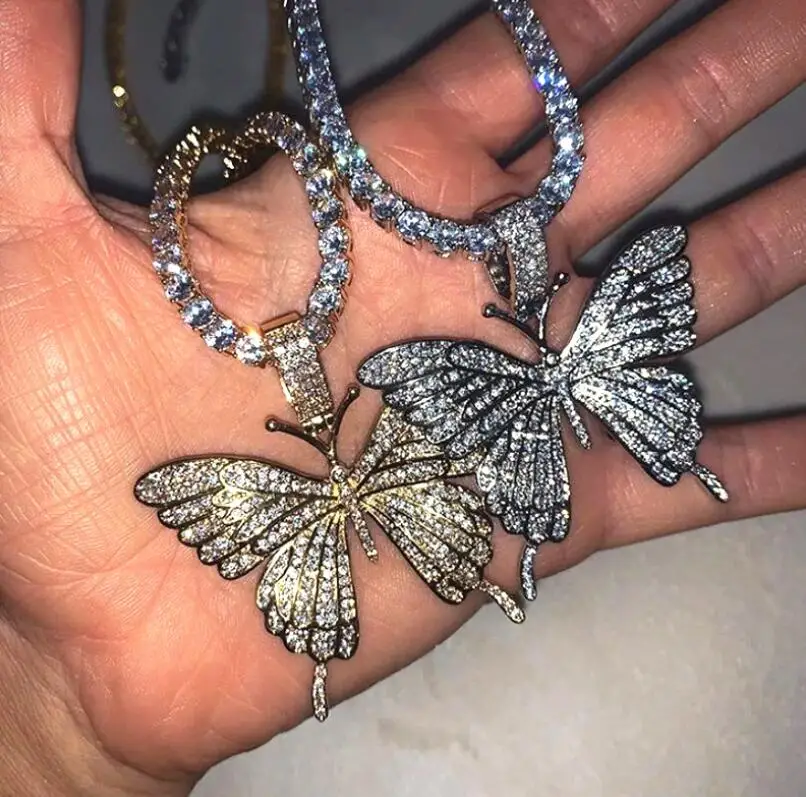 Кубинская Бабочка ожерелье стразы бабочка кулон ожерелье Хип-хоп ак...