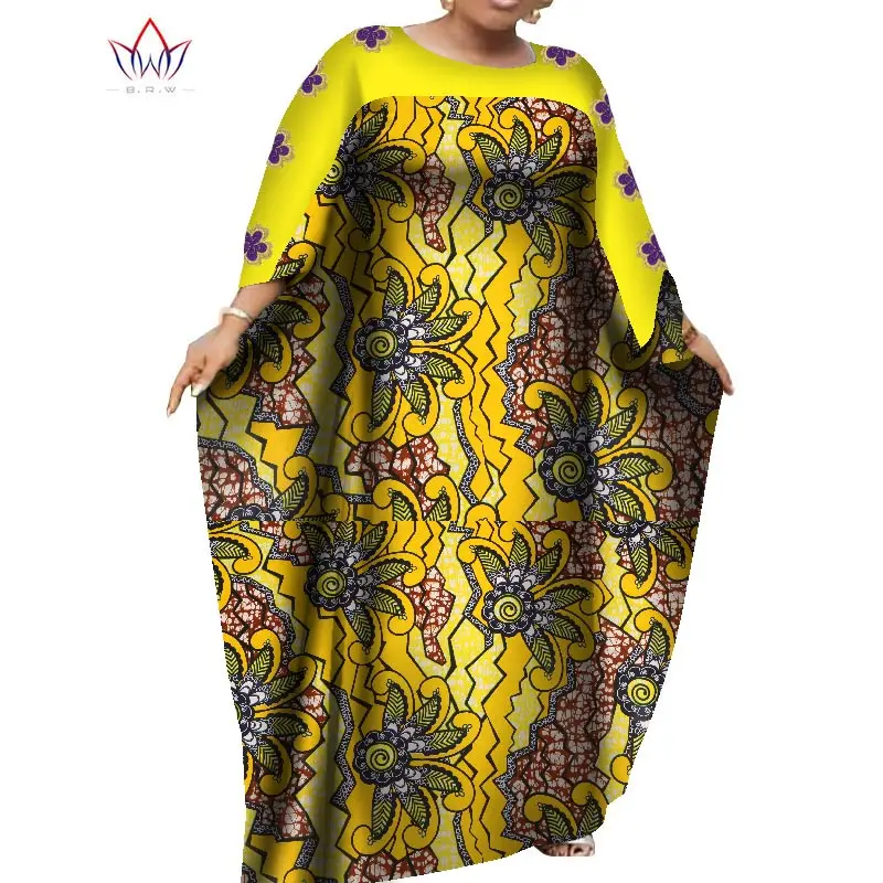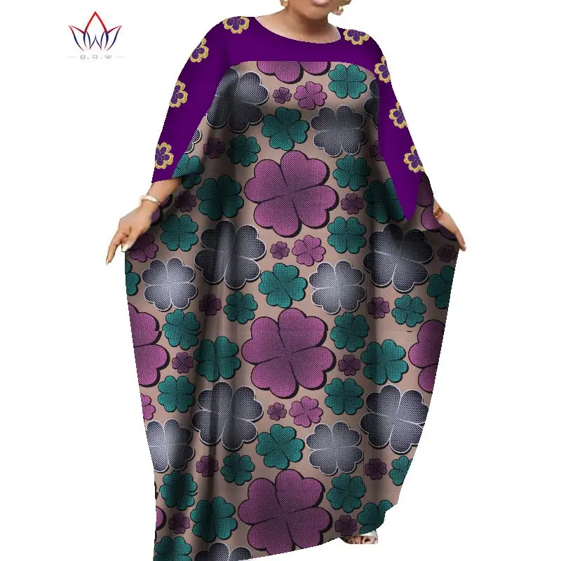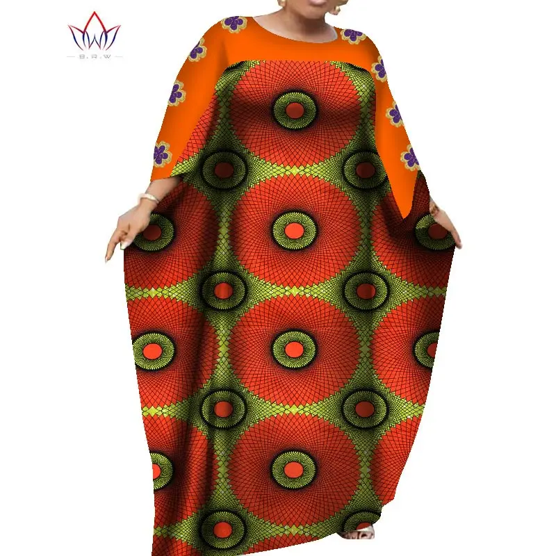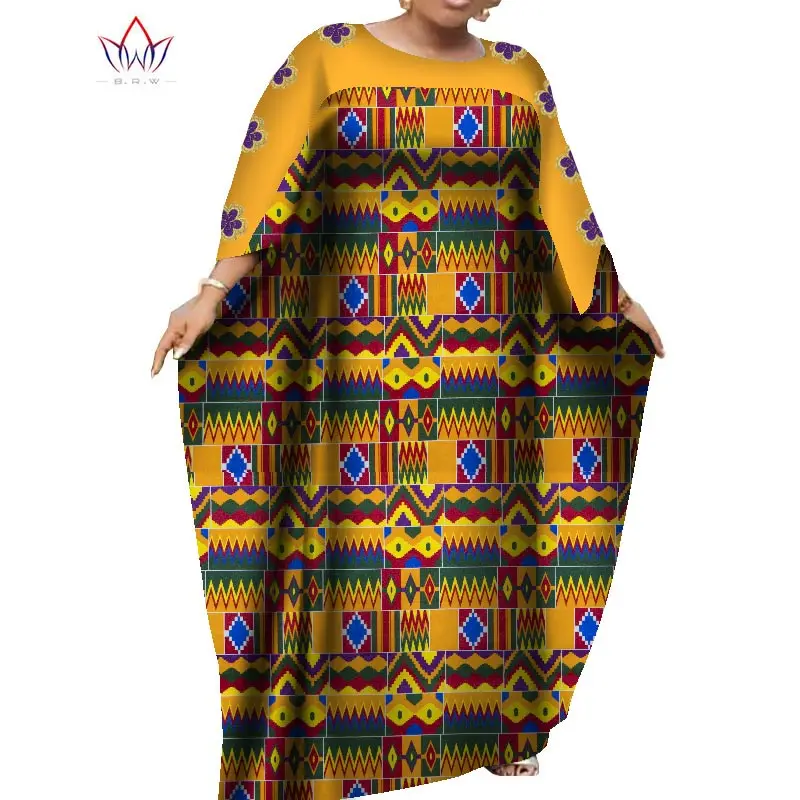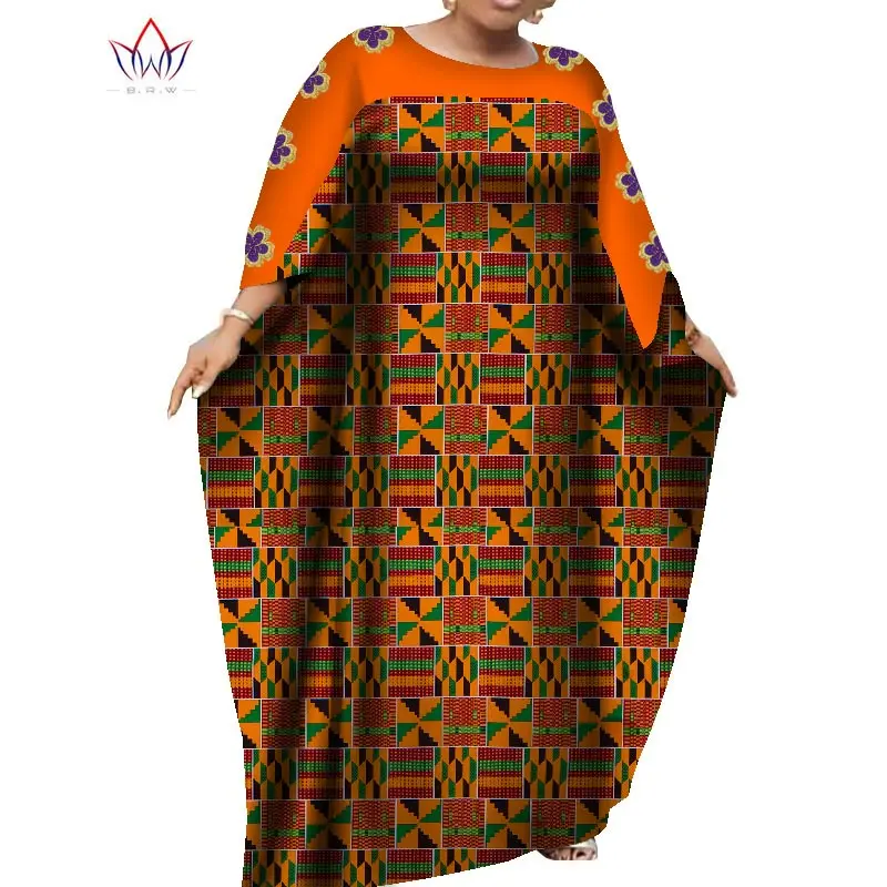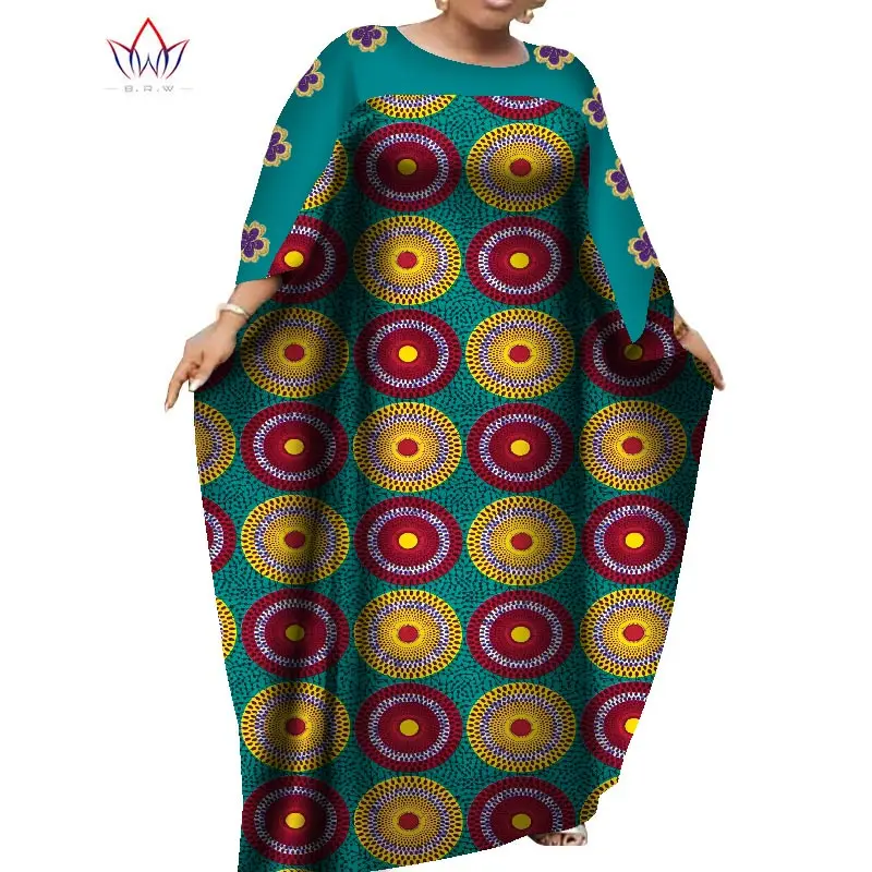 BRW платье макси для африканского Базина, Роскошное хлопковое платье с круглым вырезом и вощеным принтом, длинное платье Бриджи 6XL, модная африканская одежда WY7869