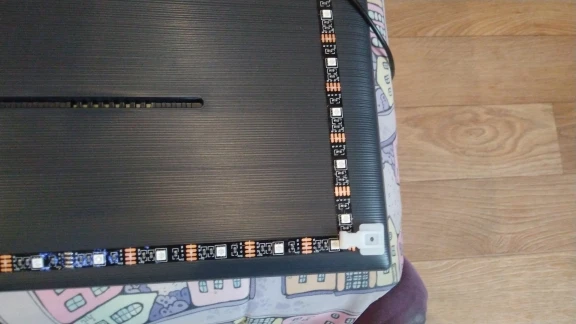 Возможно, лучший светодиод по этой цене. Хотя я сделал ошибку в получении размера 1 м для моего 27-дюймового монитора и, как вы можете видеть на фото, он не вполне освещает нижний правый угол. Отличный продукт для $10. Приложение в порядке, он добавляет больше цветовых вариантов по сравнению со стандартным дешевым светодиодом, но это не нужно, на мой взгляд.