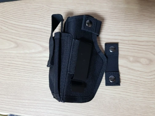 Заказывали две кобуры, одну с кармашком для патронов, другую без. На две кобуры один зажим, и то мягче чем хотелось бы, но это зависит от производителя. Плюс в той кобуре, что без кармашка, внутренняя ткань не такая как снаружи, больше похоже на мягкий флис, думаю это уменьшает срок службы. Из-за зажима открыли спор, продавец вернул 50% без проблем. Нам есть с чем сравнить, поэтому довольны не совсем на 100%, но по описанию все ок.
