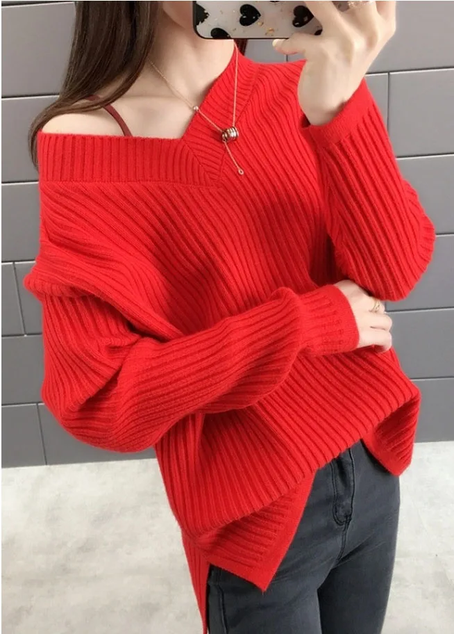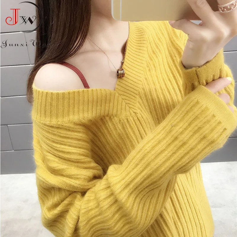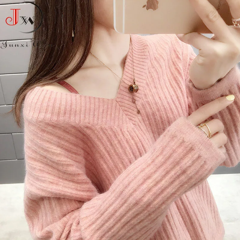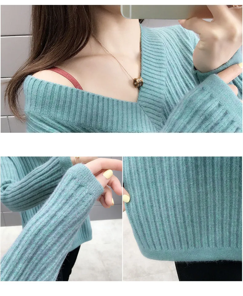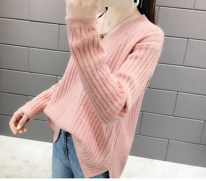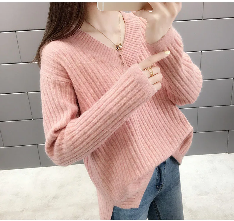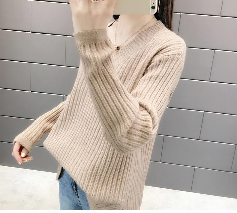 Повседневный Модный женский свитер 2022 Осень Теплый длинный рукав шикарный Элегантный мягкий пуловер с v-образным вырезом зимние женские топы свитера