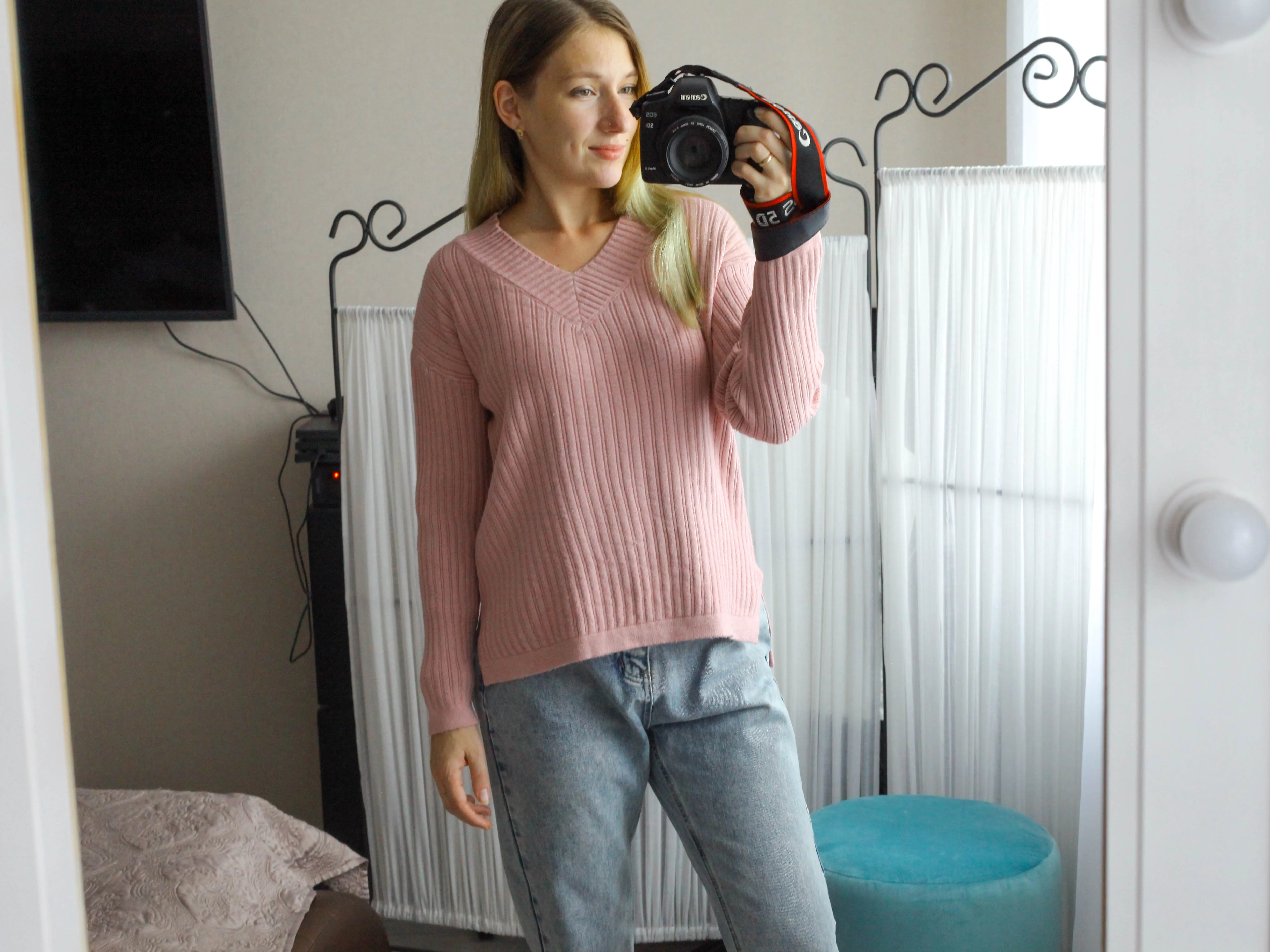 Доставка 2.5 недели. На параметры 86-72-92, рост 163 см подошло, село свободно. Подойдет и на параметры больше. Изделие не слишком теплое. Материал средней толщины, вязка не плотная. Скорее джемпер на осень. Вырез треугольный. Рукав полной длины. По спинке чуть длиннее. ПО бокам небольшие разрезы. Ткань очень хорошо тянется. К телу приятная, мягкая. Вязка декоративная. Качество хорошее.