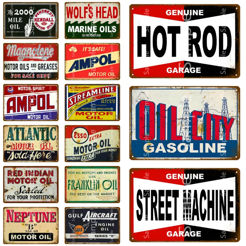 Подлинный металлический плакат для гаража, жестяная вывеска в стиле ретро, апол, мотор, масло, бензин, металлический налет, уличный станок, украшение для стен гаража YK061
