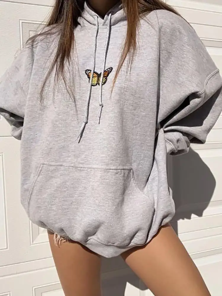 Тренд моды 2020, Женская толстовка с длинным рукавом и принтом бабочки, Осень-зима, Новые Топы с капюшоном, простые повседневные свободные толстовки