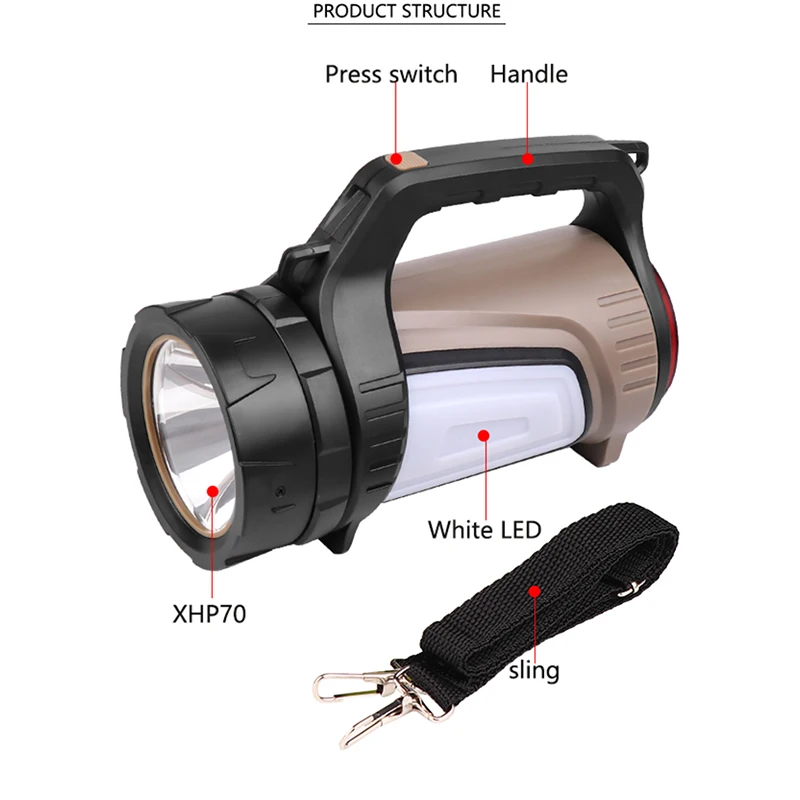 -Он обеспечивает дальность освещения до 300-500 метров и два разных режима освещения, идеально подходит для освещения всей комнаты или лагеря.