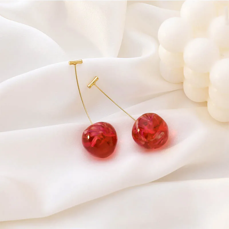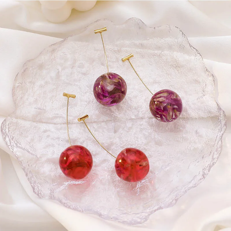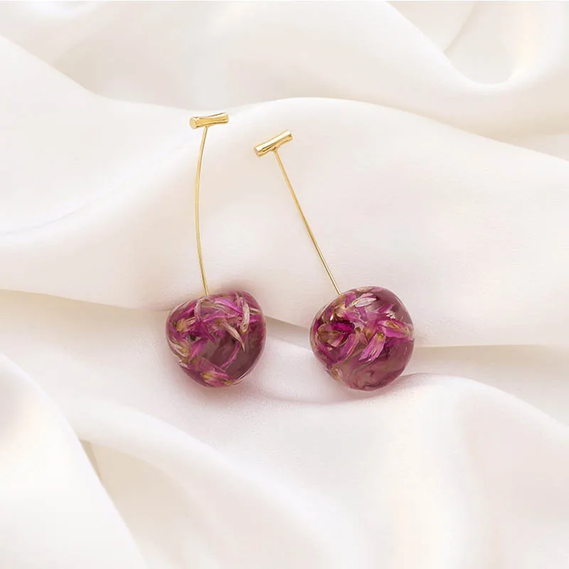 Новые японские прозрачные красные фиолетовые висячие серьги с вишневым шариком для женщин 2020 корейские сладкие сушеные цветы длинные серьги Ювелирные изделия Подарки