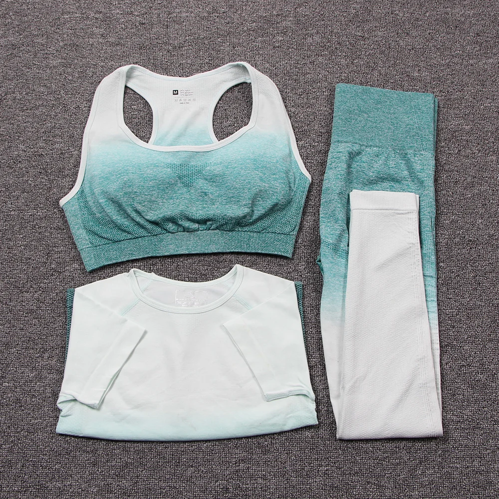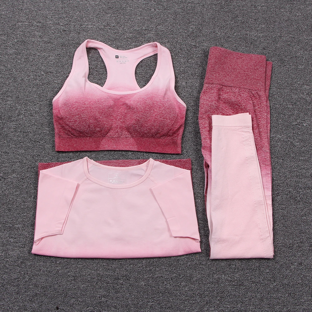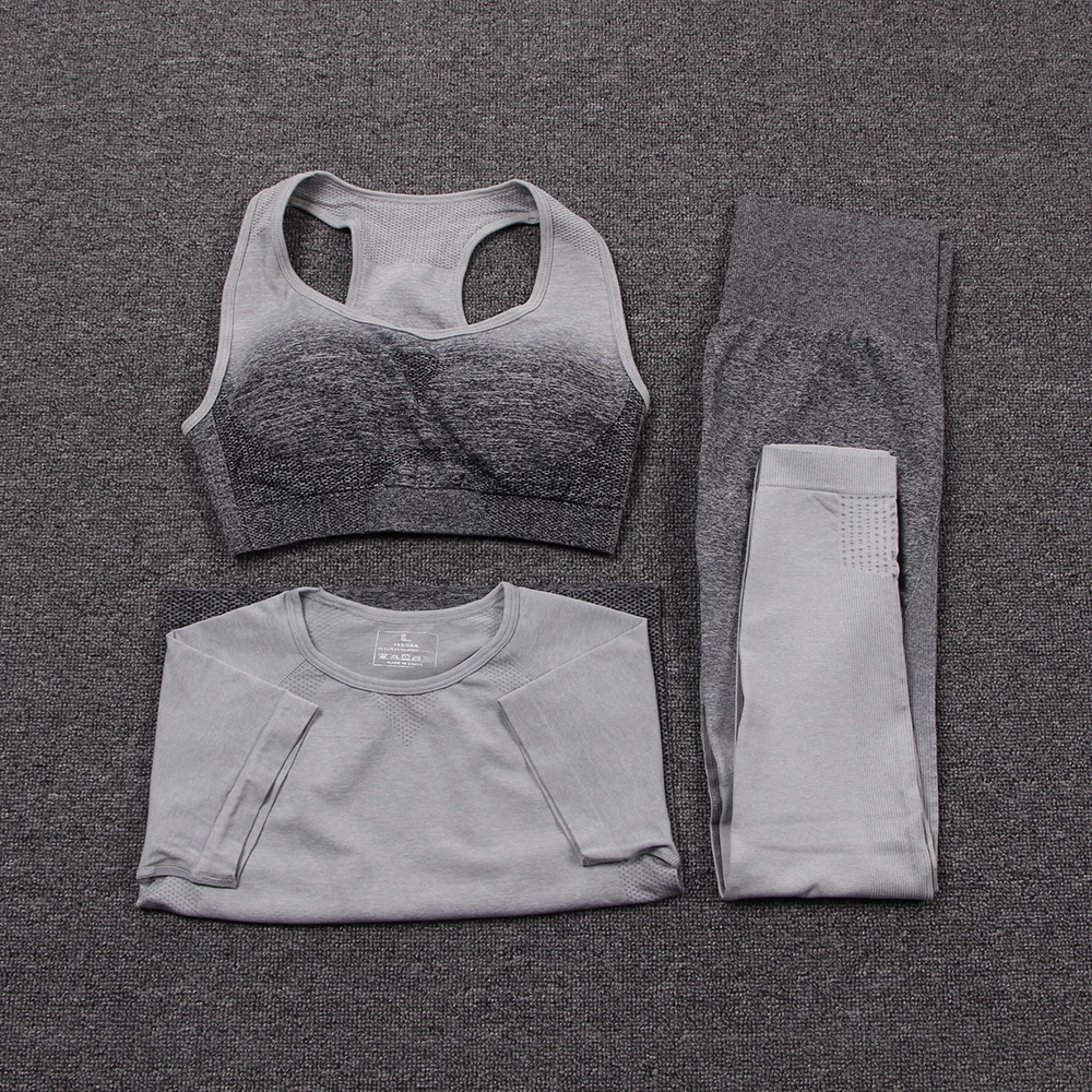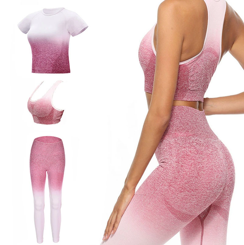 Бесшовный Женский спортивный комплект из 3 предметов, женская одежда для спортзала, одежда для тренировок, спортивный бюстгальтер, короткий топ с коротким рукавом, комплект штанов для йоги