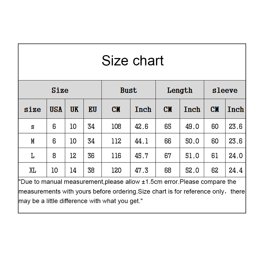 Женская Повседневная осенне-зимняя однотонная трикотажная куртка-кардиган Характеристики:Это пальто согреет Вас в холодные дни.Однотонное пальто-свитер трикотажное с тесьмой, которое является простым, но стильным.Подходит для работы, уличной одежды, путешествий, свиданий, покупок, повседневной носки и т. д. Тип: свитерТип размера: ОбычныйПол: женщинМатериал: акрил, полиэстерСтиль: ПовседневныйДлина рукава: длинный рукавУход За Одеждой: ручная стиркаОсобенности: оплетка, тонкая вязка, сплошной цветИнформация о размере:[Наш Размер S] Обхват груди: 108 см/42,5 дюйма, рукав: 60 см/23,6 дюйма, длина: 65 см/25,6 дюйма (прибл.)[Наш Размер M] Обхват груди: 112 см/44,1 ", рукав: 60 см/23,6", Длина: 66 см/26 "(прибл.)[Наш Размер L] Обхват груди: 116 см/45,7 дюйма, рукав: 61 см/24 дюйма, длина: 67 см/26,4 дюйма (прибл.)[Наш Размер XL] Обхват груди: 120 см/47,2 дюйма, рукав: 62 см/24,4 дюйма, длина: 68 см/26,8 дюйма (прибл.) Примечания:Пожалуйста, обратитесь к нашей таблице размеров и выберите правильный размер.Благодаря светильник и экрана Цвет Товара может быть s светильник ly отличается из-за характеристик монитора компьютера. Посылка включает в себя:1 свитер (сумка в комплект не входит)