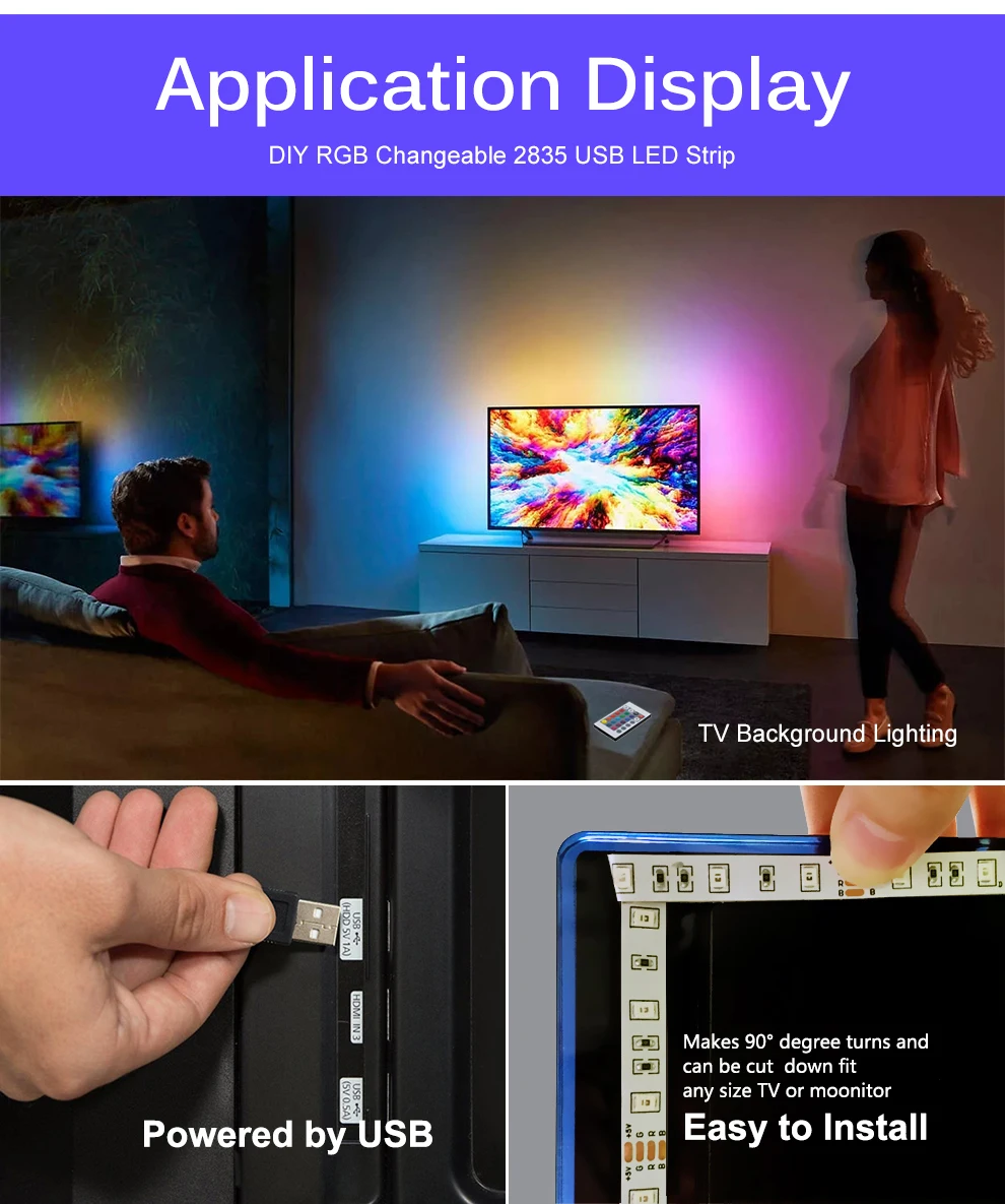 2. Для usb порта электрического тока, который небольшая часть телевизора не может достигать 1А. Когда вставьте светодиодную ленту в usb-порт телевизора, и иногда она не включается или не мигает, вы можете просто использовать универсальное настенное зарядное устройство usb 5 в 1A или 2A для питания светодиодной ленты.