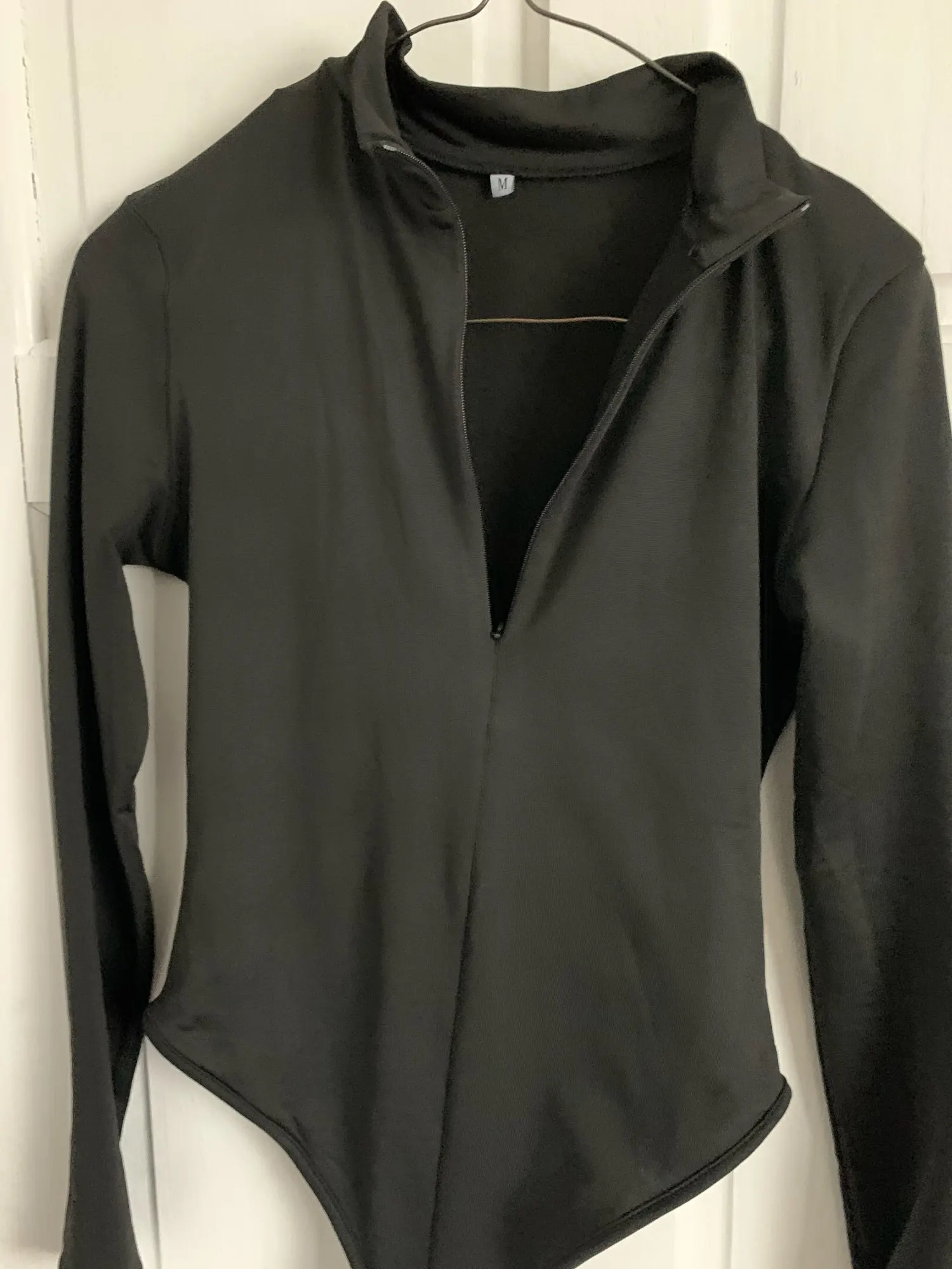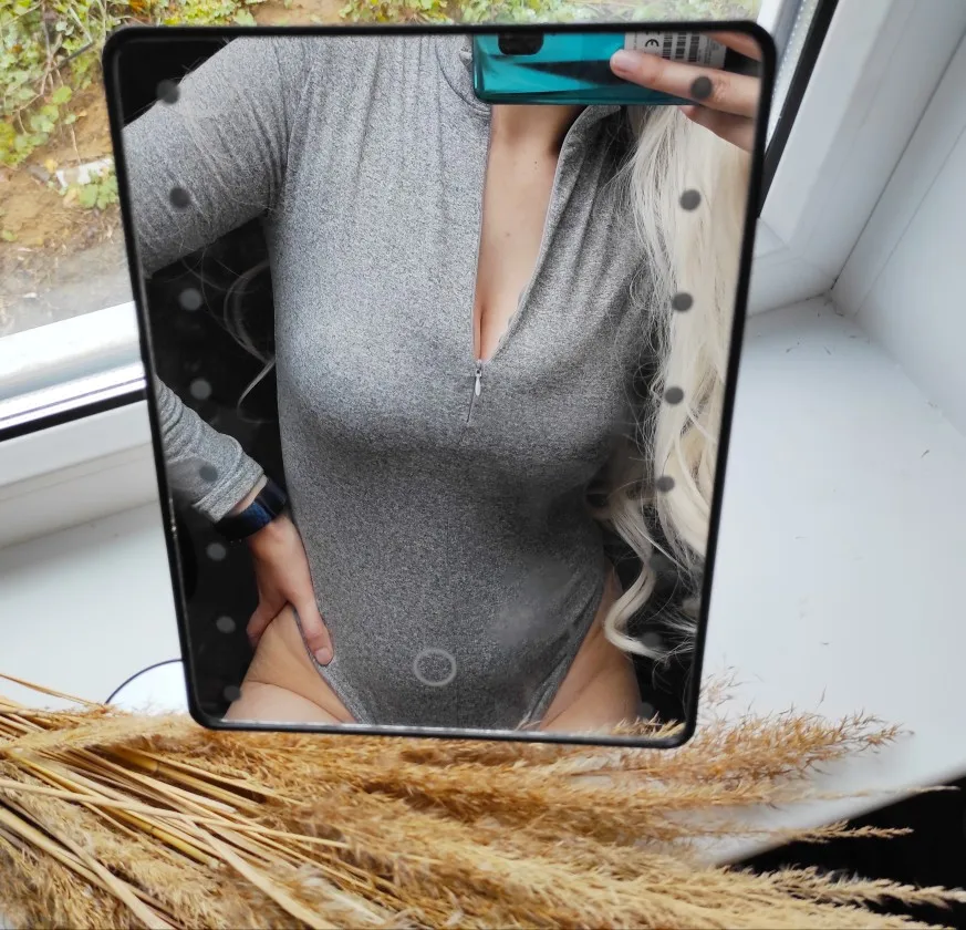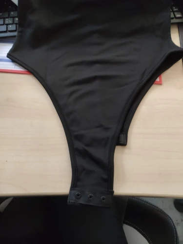 Боди мне очень понравилось, красивое и сексуальное. Выполнено идеально без лишних ниток швы ровные, фактура ткани в рубчик, материал плотный спандекс не просвечивается. Боди полностью облегающее подчеркивает все достоинства фигуры, к сожалению недостатки тоже будут видны. Боди сделано очень сдержано горловина по самую шею, но есть одна изюменка на груди молния с глубоким декольте, молния внутренняя очень удобно. Застегиваеся тремя кнопками ,кнопки крепкие хорошо держат нечего не трет не давит. На свои параметры 90/80/98 рост 170см взяла размер L, немного жмет в груди если, у кого грудь как у меня думаю надо размер больше. Такое боди удобно носить под брюки или юбки все плотно сидит точно нечего не выскочит, не придется постоянно поправлять как обычные рубашки. На выбор у продавца 5 цветов размерная сетка от S до M, мой цвет серый . Доставка быстрая, трек отслеживался упаковка в плотный зип пакет. Покупкой довольна рекомендую однозначно.