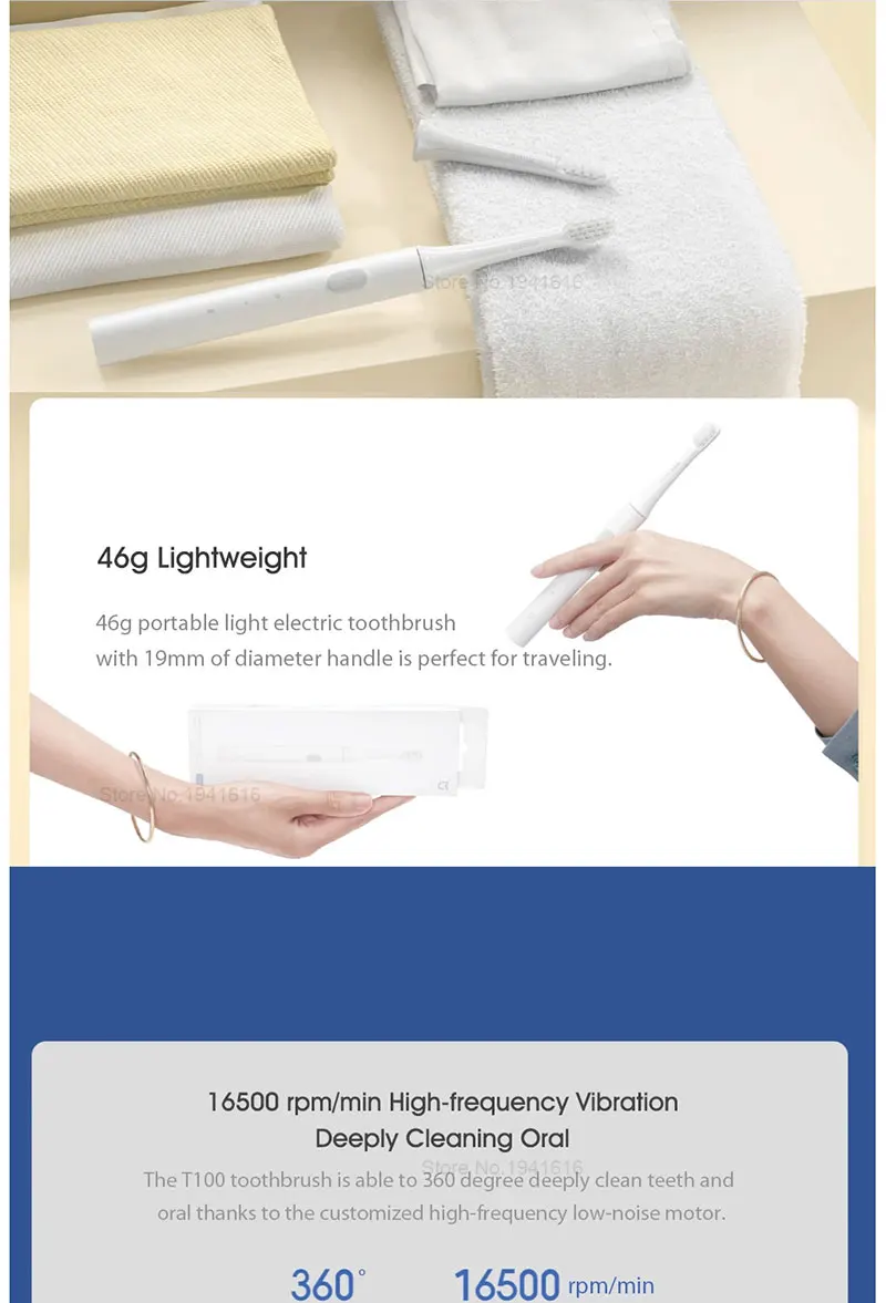 Оригинальная звуковая электрическая зубная щетка Xiaomi Mijia T100 с зарядкой от USB, водонепроницаемая с функцией напоминания о зоне, семейный уход за полостью рта