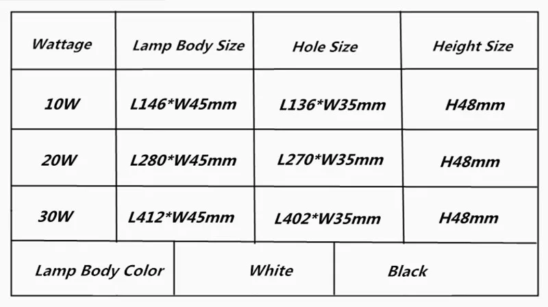 Вход Напряжение: AC85 ~ 265V/110V/220V 50/60 Гц мощность: 10 Вт/20 Вт/30 Вт с регулируемой яркостью: Да Цвет Индекс цветопередачи (CRI):> угол луча Ra90: 20 ° светодиодный чип: C0B чип (CREE) Световой поток: 95 ~ 110 лм/Вт температура s: от-25 до 45 ° Цветовая температура: теплый белый:(2700K-3000K); Натуральный белый:(4000K-4200K); Холодный белый:(6000K-6500K) Срок службы: 50000 ~ 80000 часов Гарантия: 3 года Материал: литье под давлением алюминий + акрил Происхождение: Гуандун (Китай)